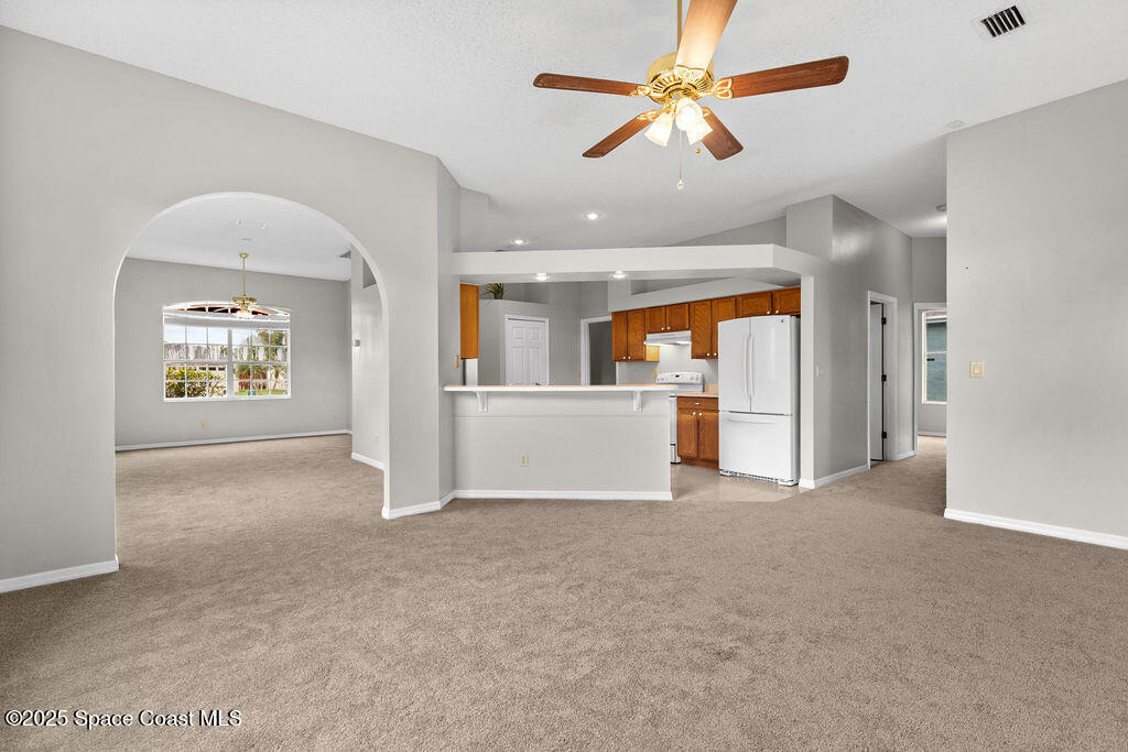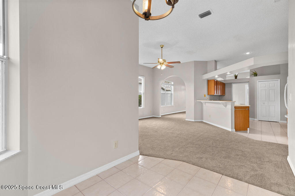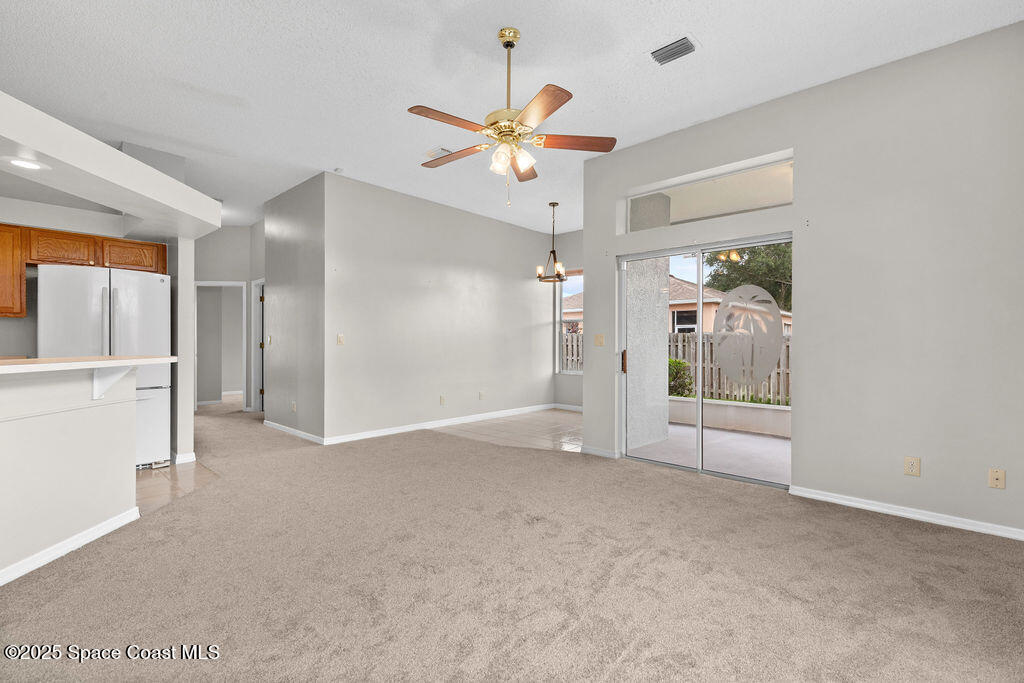 Move-In-Ready 3-Bedroom Home in Sought-After Viera Community - Well-maintained 3-bedroom, 2-bath home offers 1,644 sq. ft. of comfortable living space designed for everyday enjoyment. The bright, open living and dining area features large windows that fill the home with natural light. The spacious kitchen includes a breakfast bar, pantry, and plenty of counter space. Just off the kitchen, the cozy family room and inviting breakfast nook provide the perfect gathering space and open directly to the screened-in patio--ideal for relaxing or entertaining outdoors. This home features new carpet throughout and fresh exterior paint, offering a clean and move-in-ready feel. The roof was replaced in 2014. Residents of Hammock Trace enjoy access to a community pool and clubhouse. Conveniently located near top-rated schools, shopping, dining, parks, and I-95, this home offers the perfect balance of comfort and convenience. View the 360 virtual tour: https://my.matterport.com/show/?m=rS4DsdkUoau