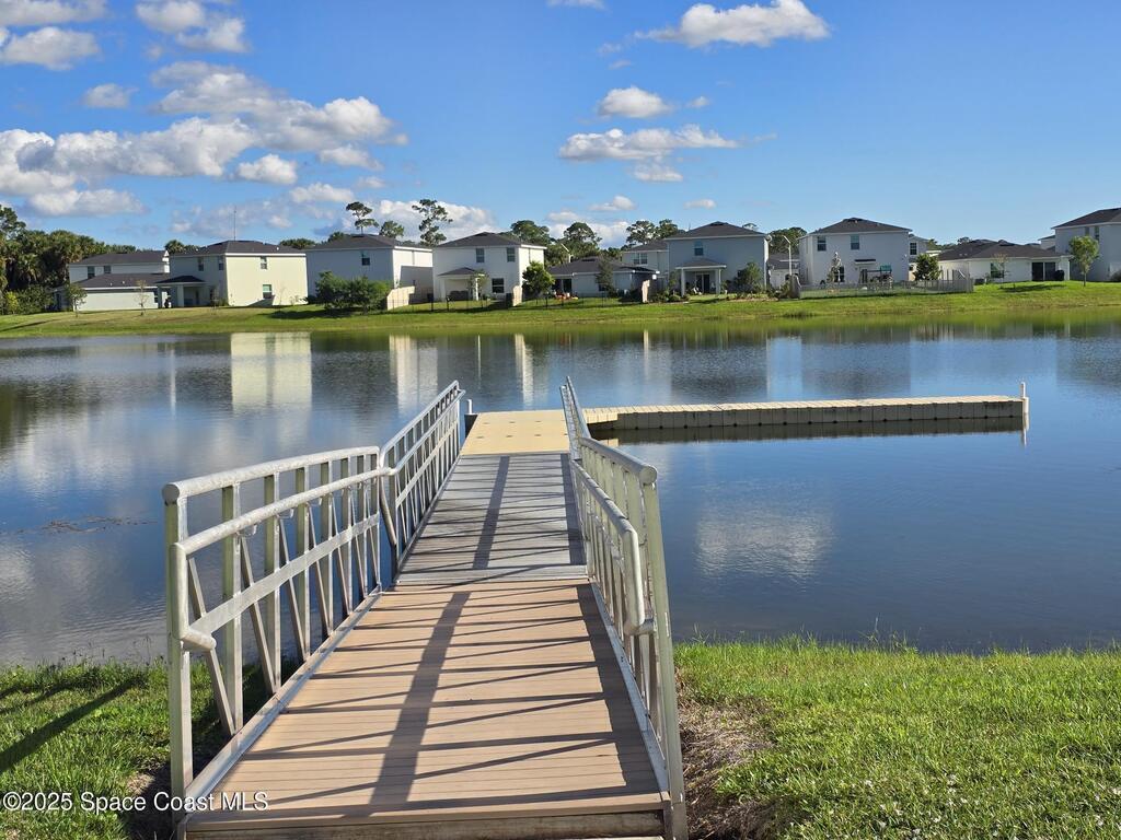 Welcome to Tillman Lakes, one of the Newest Gated Communities in Palm Bay. Conveniently Located just a few Minutes to the Recently Built Publix Center on the St. John's Heritage Pkwy. This Nearly New Lakefront 2-Story Home offers a Great Floor Plan with a Downstairs Primary Suite, Wood-look Tile in the Living Areas, a Modern Kitchen with Quartz Countertops & a Walk-in Pantry. The Upstairs Includes a Spacious Loft & 4 More Bedrooms. Solidly Built with Concrete Block on Both Stories and Impact Glass for Every Window & Slider. The Brick Pavered Driveway and Patio add a Touch of Class. You'll Enjoy Memorable Times Relaxing by the Water just Outside Your Door. The Community Features Sidewalks for Safety, Several Scenic Lakes, a Playground, Outdoor Exercise Stations, Mail Kiosks, and a Dock. This is a Great Place to Make Your New Home!