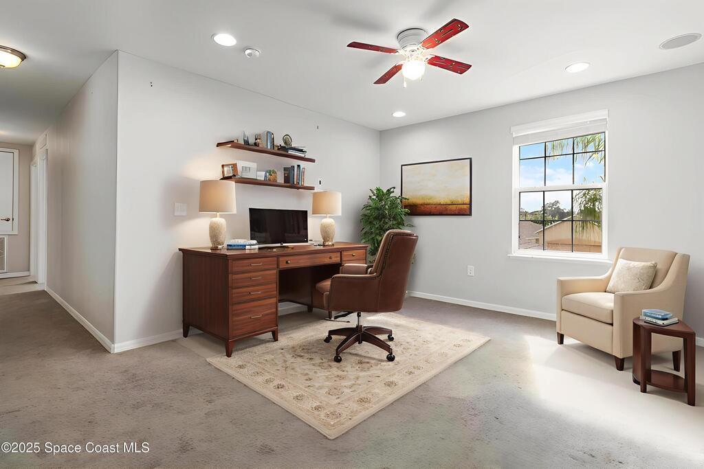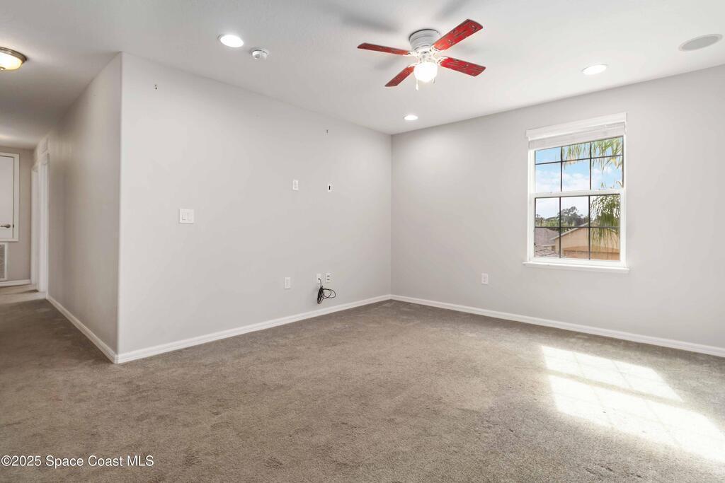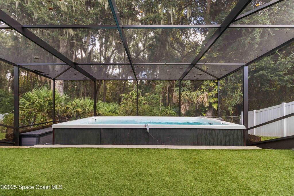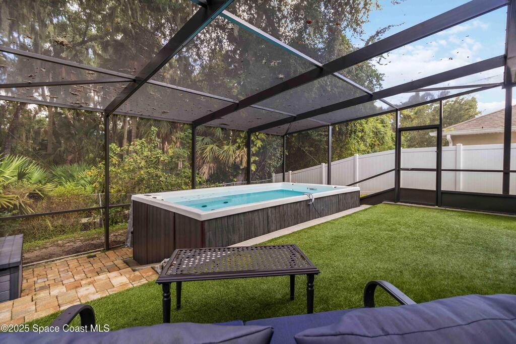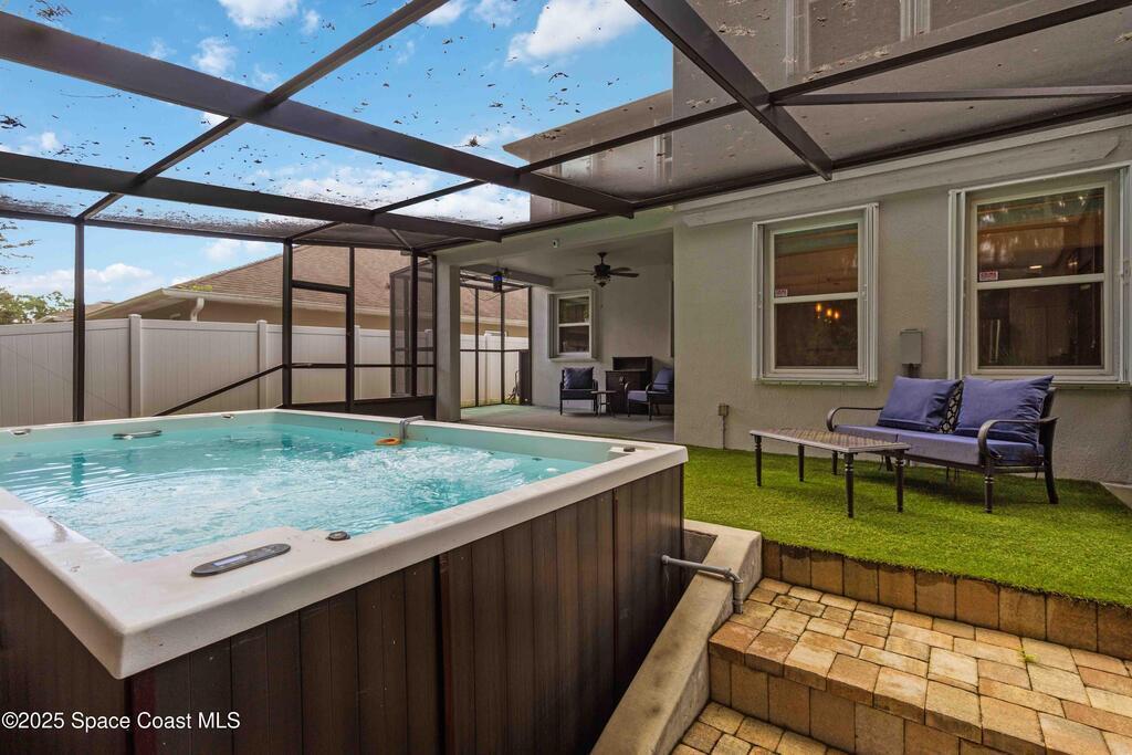 You'll feel right at home in this beautifully maintained 3-bedroom, 2.5-bath home filled with thoughtful upgrades and unique extras. The spacious open living room welcomes you in, leading to an updated kitchen featuring granite countertops, stainless steel appliances, a wine fridge, cooktop, breakfast bar, & island. A convenient half bath is located off the dining area, perfect for guests enjoying the heated swim spa installed in 2022--ideal for relaxation, hydrotherapy, or a refreshing swim. Upstairs, the primary suite offers tray ceilings, abundant natural light, a vanity area, and a walk-in closet the size of a small bedroom! The main bath includes a garden tub and a luxurious double rain shower, while the loft makes a great office or play space, with laundry nearby for convenience. Additional perks include extra storage in the 2-car garage and side room, a Ring doorbell, security system, storm shutters, and whole-house generator wiring. Close to KSC, the airport, shopping, & more!