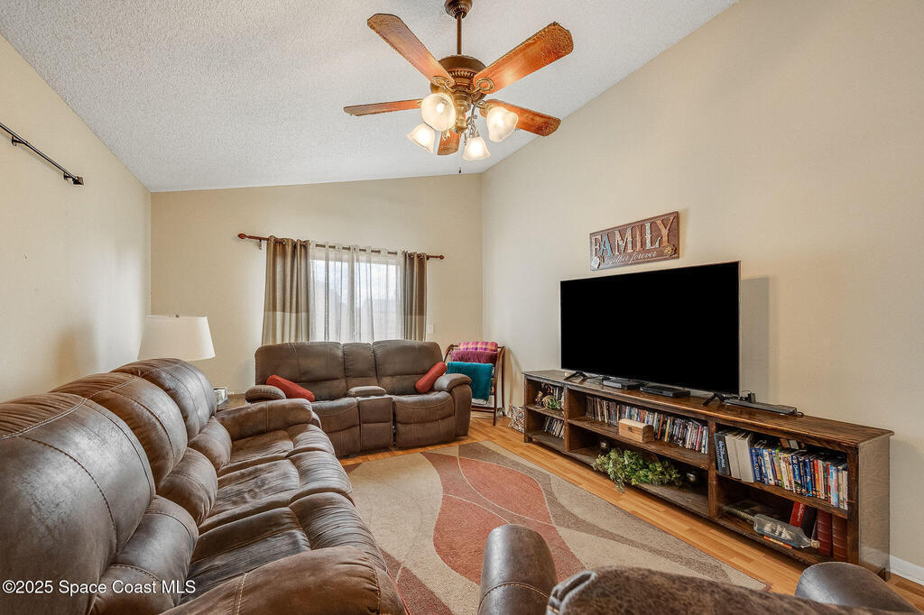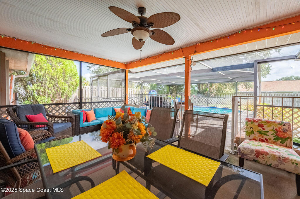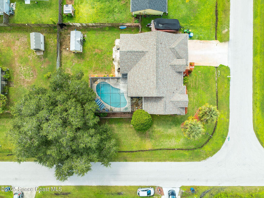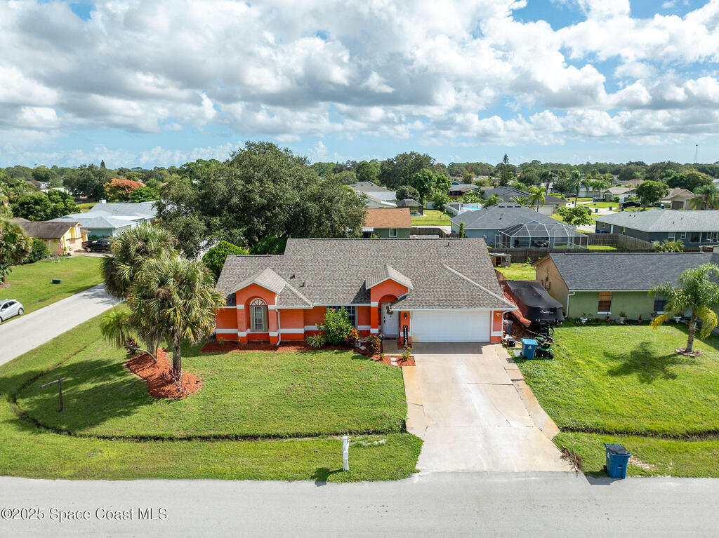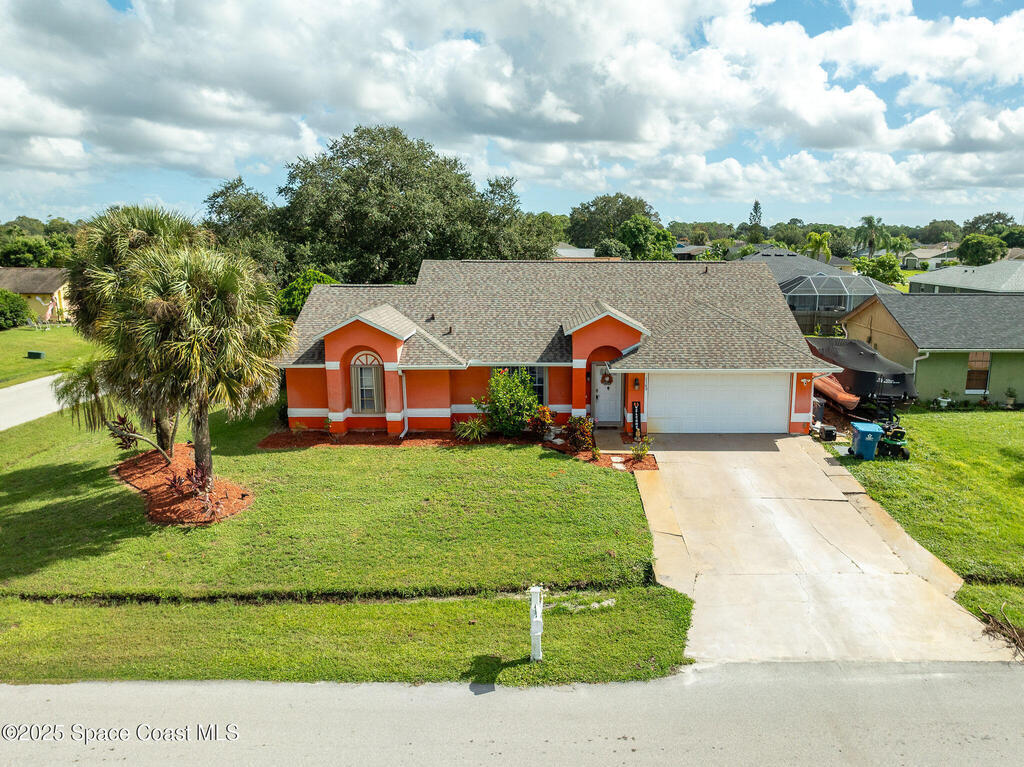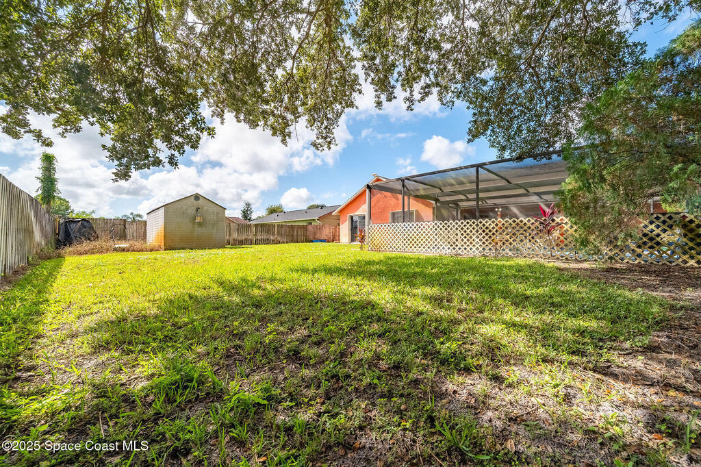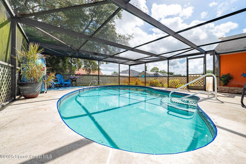 Beautiful split-plan pool home on a fully fenced corner lot in Palm Bay! Enjoy the screen-enclosed pool and patio, perfect for relaxing or entertaining. Inside, you'll find an open kitchen overlooking the family room, plus formal living and dining areas and vaulted ceilings that create an open, airy feel. The primary suite offers privacy from guest bedrooms. Additional features include fresh exterior paint, a new roof, 2019 A/C, hurricane shutters, and a storage shed. Conveniently located near shopping, dining, and I-95!