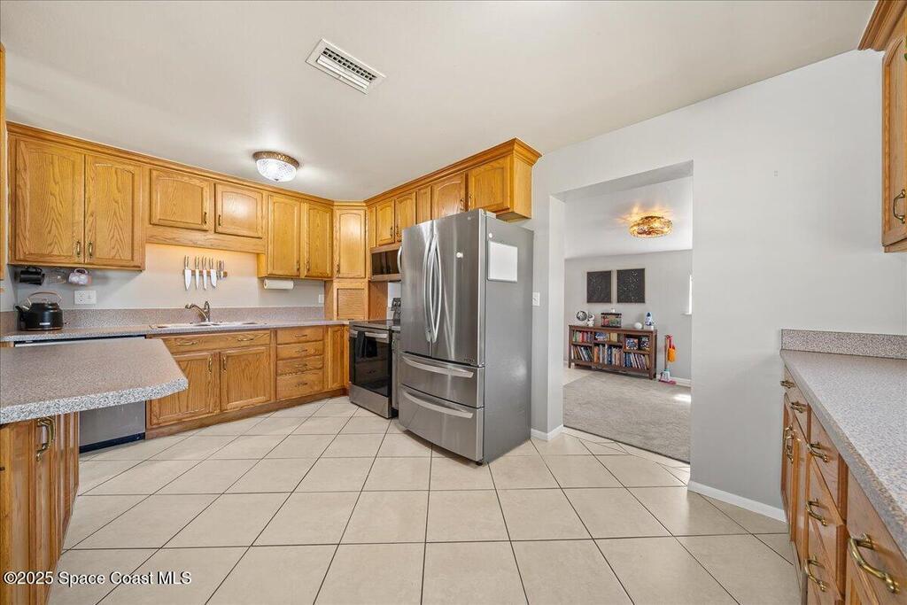Roof and HVAC 2015, Septic and drainfield replaced in 2022, new electrical panel 2025, and full repipe! This Titusville home is move in ready with all big ticket items updated. Home offers a desirable split floor plan, two separate living areas, formal dining space, and an interior laundry room. The primary suite is expansive with room for a sitting area, office space, or workout corner. The kitchen boasts a lot of natural light, stainless steel appliances, and solid wood cabinetry. Large oversized lot offers a fenced in backyard, storage shed, and garden beds along the right side of the yard. Conveniently positioned just a short drive to historic downtown Titusville, the Playhouse, Kennedy Space Center, and Florida's beautiful beaches.