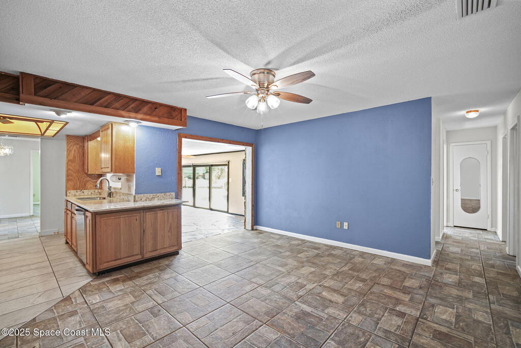 This waterfront pool home on Merritt Island boasts approximately 176 feet of frontage along a navigable deep-water canal featuring a spacious turnaround basin suitable for large vessels. With direct access to the Banana River and ocean via Port Canaveral, the property offers exceptional boating opportunities. Constructed from concrete block, the residence includes a four-bedroom split plan with two bathrooms, an inground pool, and all-tile flooring throughout. The bathrooms have been renovated, and the roof was replaced in 2016, with the HVAC system updated in 2017. Hurricane impact windows were installed in 2022, enhancing safety and energy efficiency. The open layout encompasses a kitchen, living room, family room, and a 35x13 Florida room complete with a fireplace, which provides access to a bathroom and features large sliding doors leading to the pool and waterfront. The expansive lot is surrounded by a privacy fence, mature landscaping and shade trees,