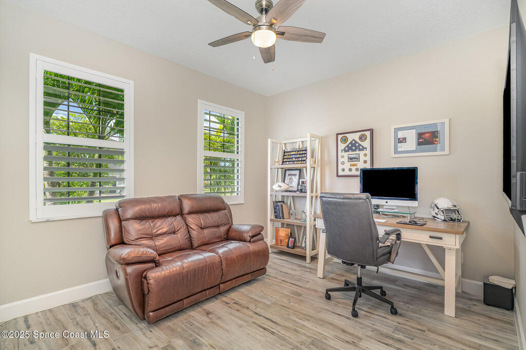 Buyers don't want to miss this--''Seller will contribute 1% of loan amount towards buyers's loan discount fee or a buydown fund, in order to assist with reducing buyers's payment with acceptable offer''This beautifully maintained and exquisitely upgraded home in the heart of Viera!! This spacious 4 bedroom 3.5 bath residence offers comfort, style and functionality perfect for any family. Nestled on a quiet cul-de-sac, this home features hurricane impact windows, tile flooring throughout, plantation shutters, crown molding, tray ceiling in primary bedroom. Full overlay kitchen cabinets, Quartz countertops, tile backsplash. A screened charming lanai for outdoor relaxation. The open layout is ideal for entertaining, while each room is tastefully decorated and move in ready. With ample space for everyone. Per seller enough room in back yard to add a pool. This home is a rare find in one of Viera's most desirable neighborhoods. Enjoy resort-style amenities at the Addison Village Clu