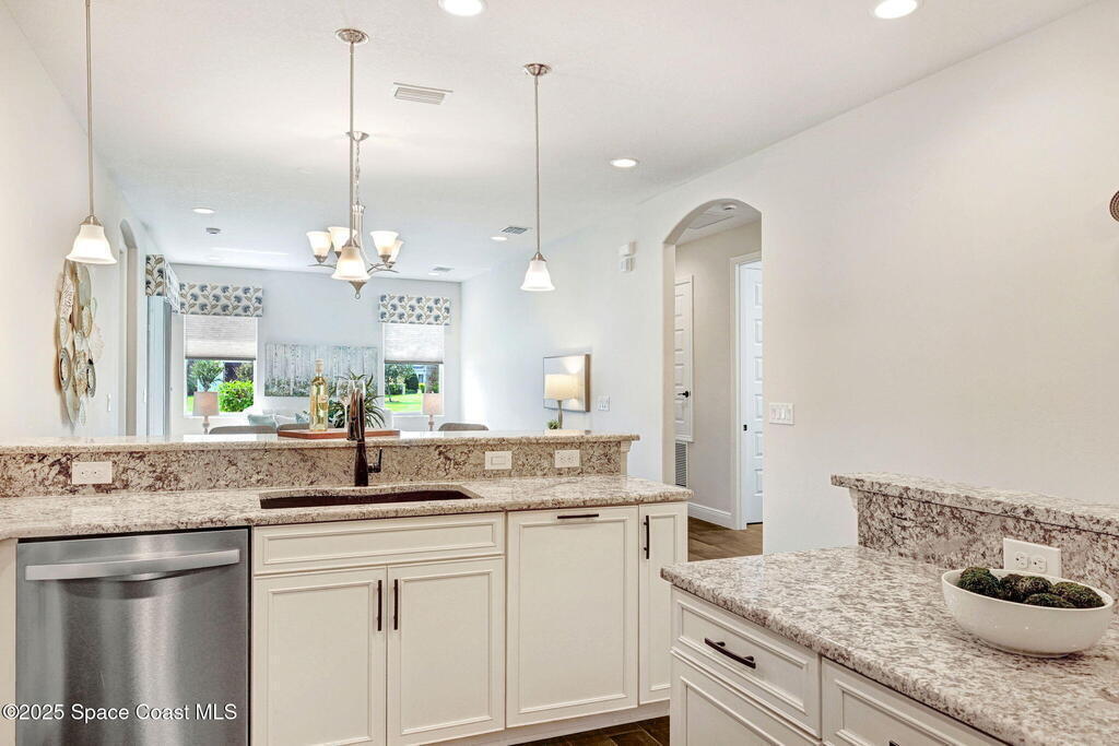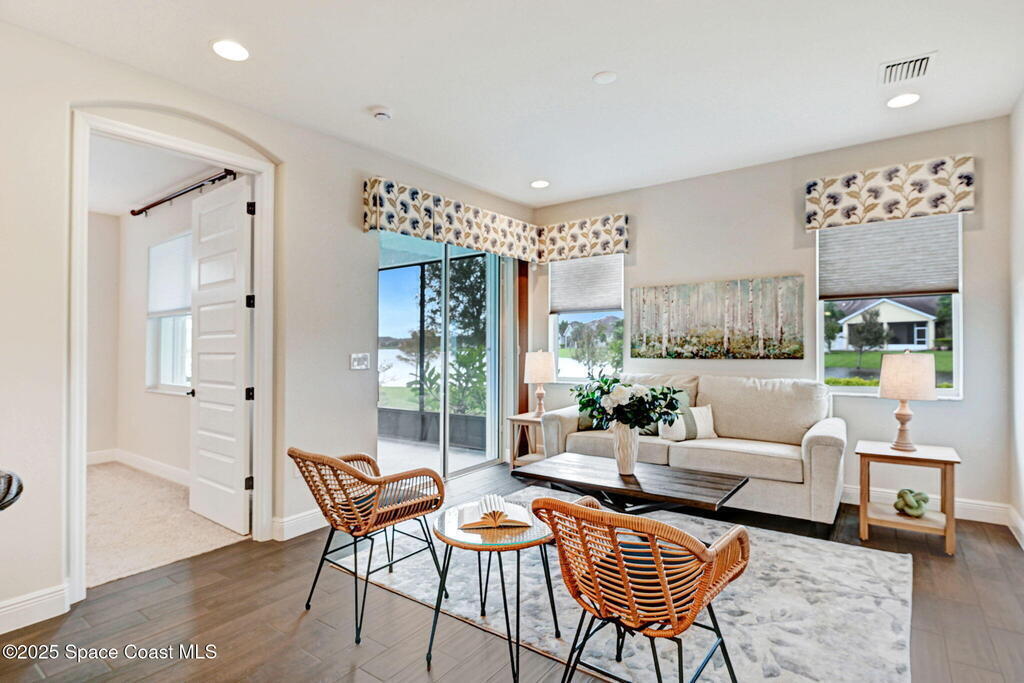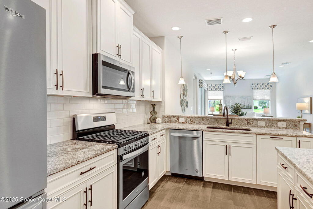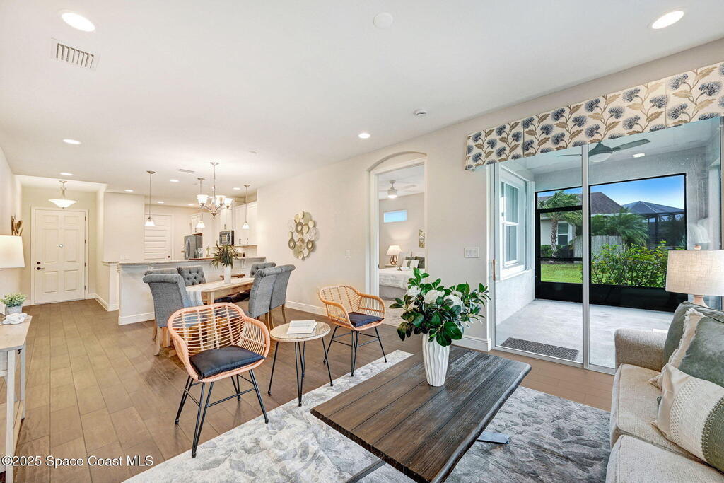 Skip the construction dust and move right into this beautifully upgraded duplex. Offering peaceful lake views, a private side yard, and an open layout, this 3BD/2BA home delivers the perfect blend of modern design and low-maintenance living, without the wait or added costs of new construction.Inside, you'll find luxury wood look tile flooring, high ceilings, and a spacious kitchen with 42'' cabinets, granite counters, and stainless-steel appliances. The split-bedroom layout gives everyone space to spread out, while the primary suite offers a serene retreat with a walk-in closet and spa-style shower.Enjoy your morning coffee or evening glass of wine on the screened lanai overlooking the water. It's a peaceful backdrop you'll never get tired of. Because it's an end-unit, you'll also appreciate the extra windows, privacy, and green space that most neighboring homes can't offer.HOA dues cover lawn care, exterior maintenance, and access to the Addison Village Club amenities.