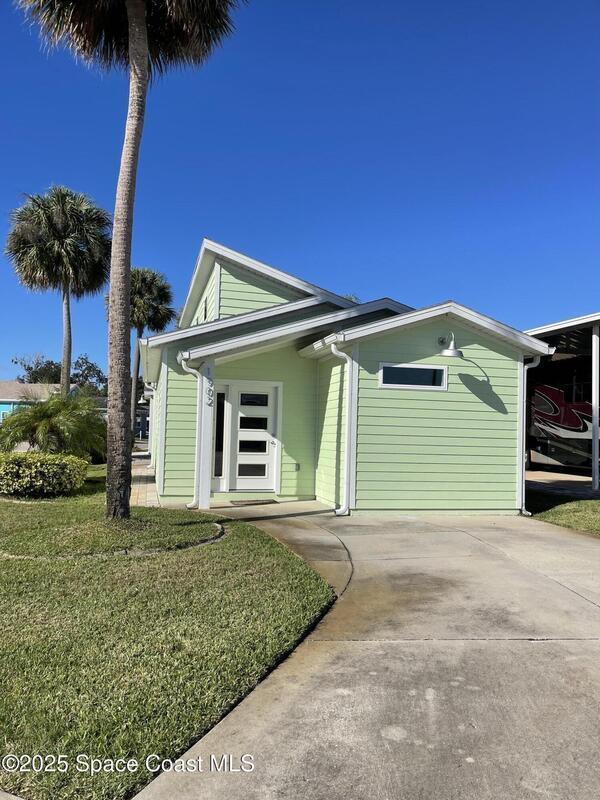 A newly constructed custom home with a detached garage awaits you! Brand new decor with new appliances, vaulted ceilings with skylights and fans throughout. A large paved patio extends from the house to the detached garage. The garage has a vaulted ceiling with great light and a garage door to accomodate your small car, golf cart, motorcycle or other toys. Willow Lakes is a 55+ commiumity. The location is near airports, beaches and theme parks. There is an executive golf course on the property. There is a gated entry, clubhouse, heated pool, pickleball, tennis and more. Rocket launches can be seen from your yard.
