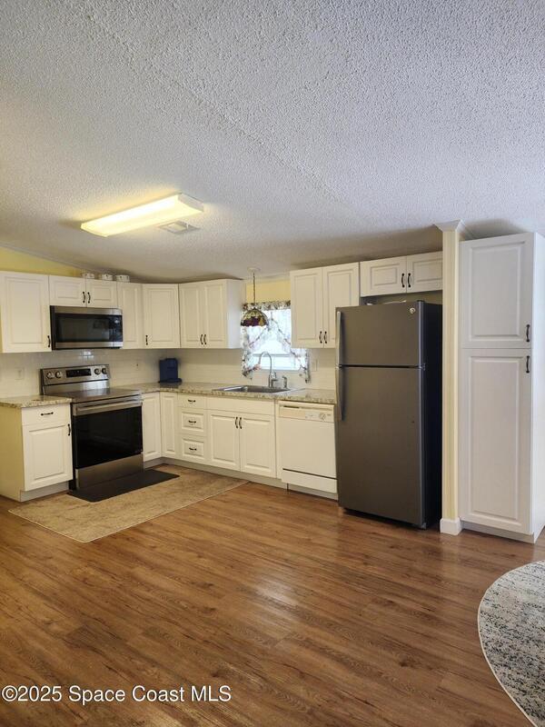 Affordable living at its best! Check out this well-maintained updated two bedroom, two bath home in much sought after Barefoot Bay where you own your land!! This home features an updated kitchen with new appliances. open floor plan, carport and large back yard with patio to enjoy the beautiful Florida sunsets and plenty of room to add a fence and a screened porch to make it a true oasis! $1001.17 paid annually to BBRD in yearly tax. 1 time $1,605.00 membership paid to BBRD at closing. Call to view today!