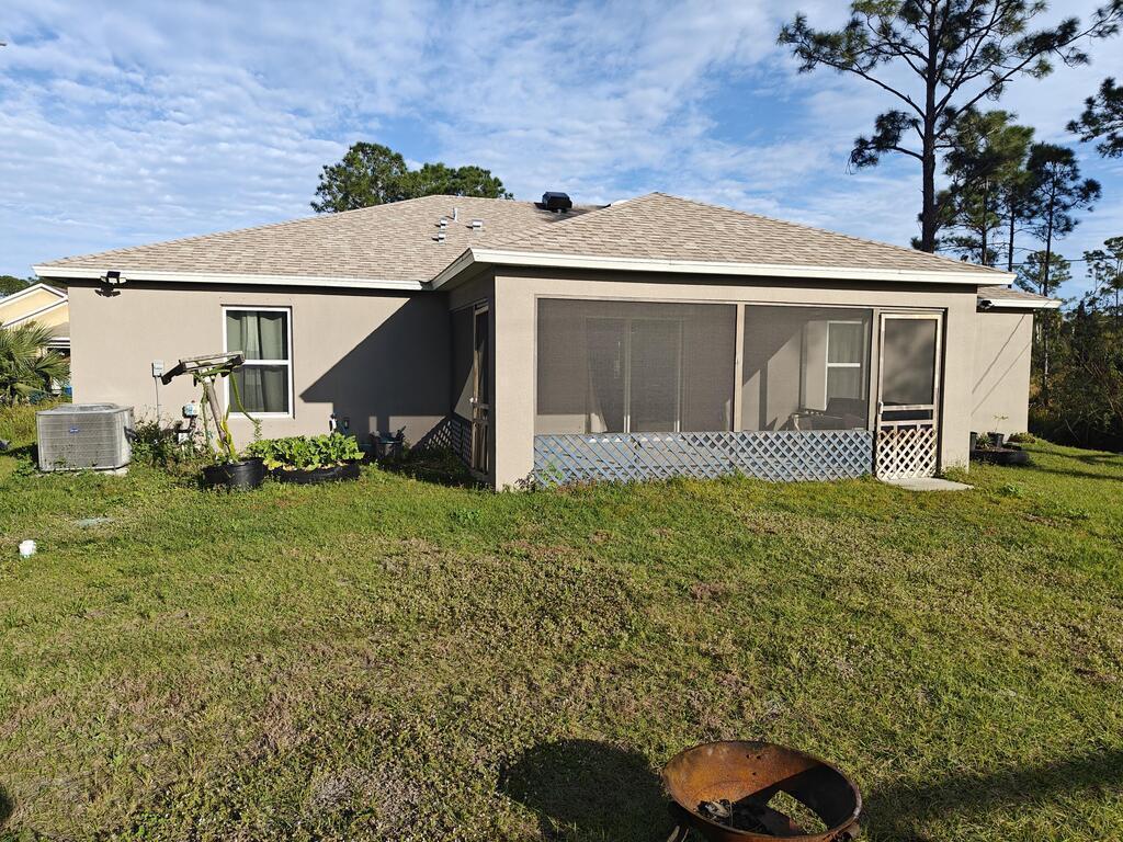 New Tenant Wanted! Newer (2022) Concrete Block Stucco home in SE Palm Bay minutes from Bayside Lakes available NOW! 3 beds, 2 baths, and a bonus room/office! The backyard oasis features a fruit-filled garden and flower/vegetable beds, plus a well and septic system for self-sufficiency. Built-in pest control ensures a serene living environment. Indulge in the luxury of a high-energy-efficient home with a screened porch and a master suite boasting a walk-in glass door shower. The guest room pampers with a soaking tub. The kitchen is a chef's delight with tall cabinets and a sizable pantry.