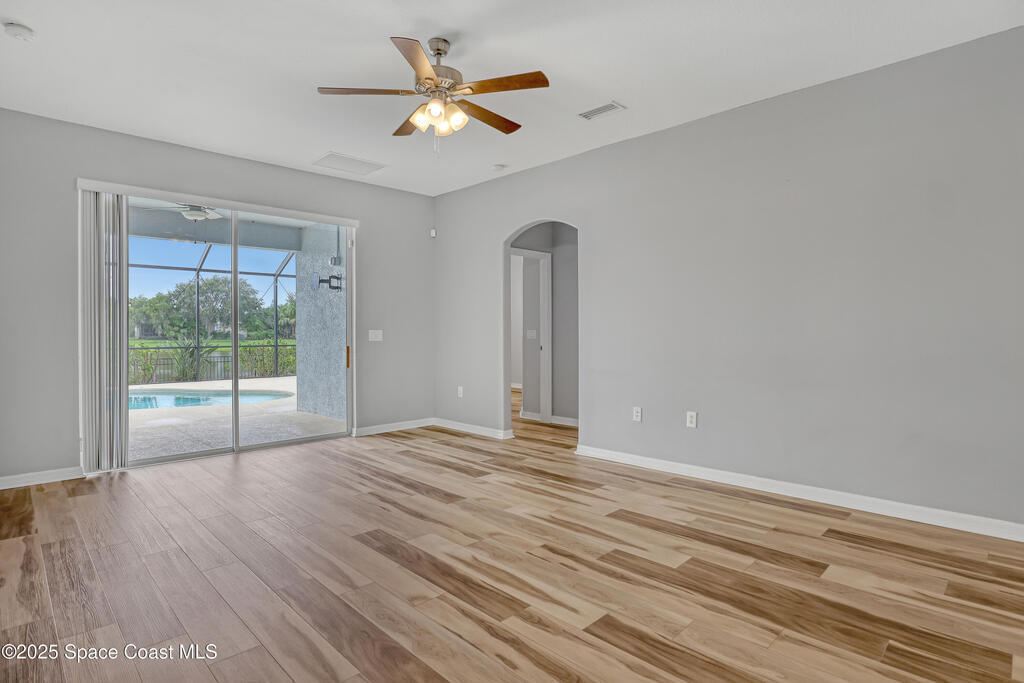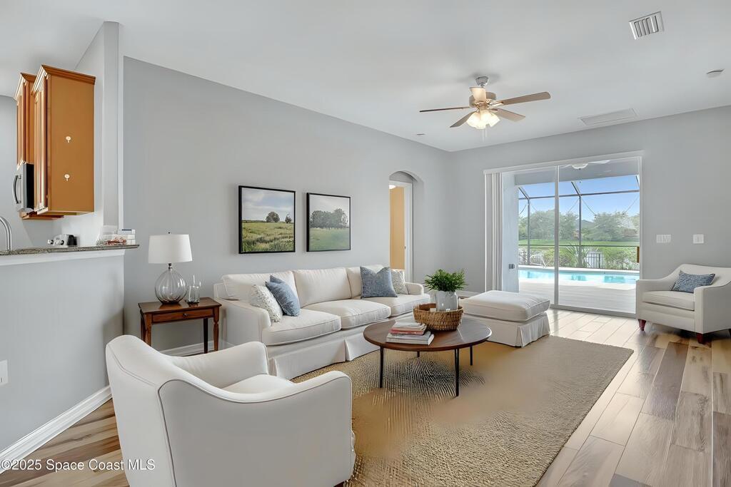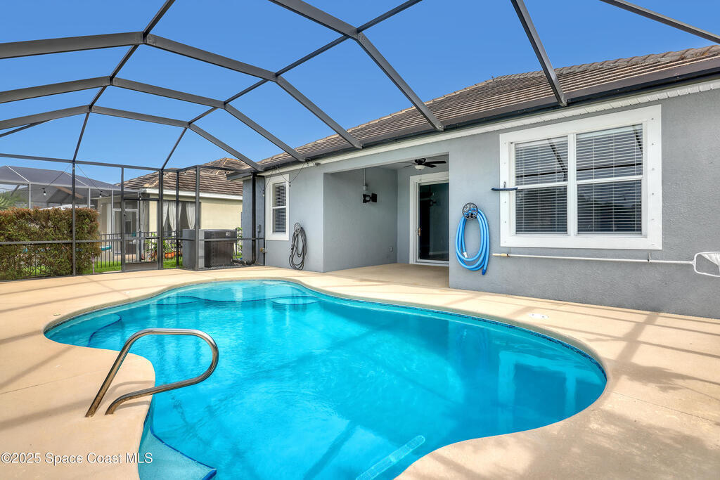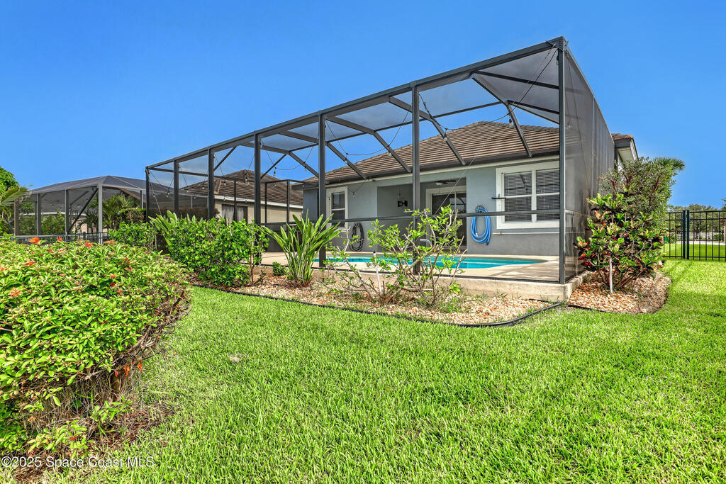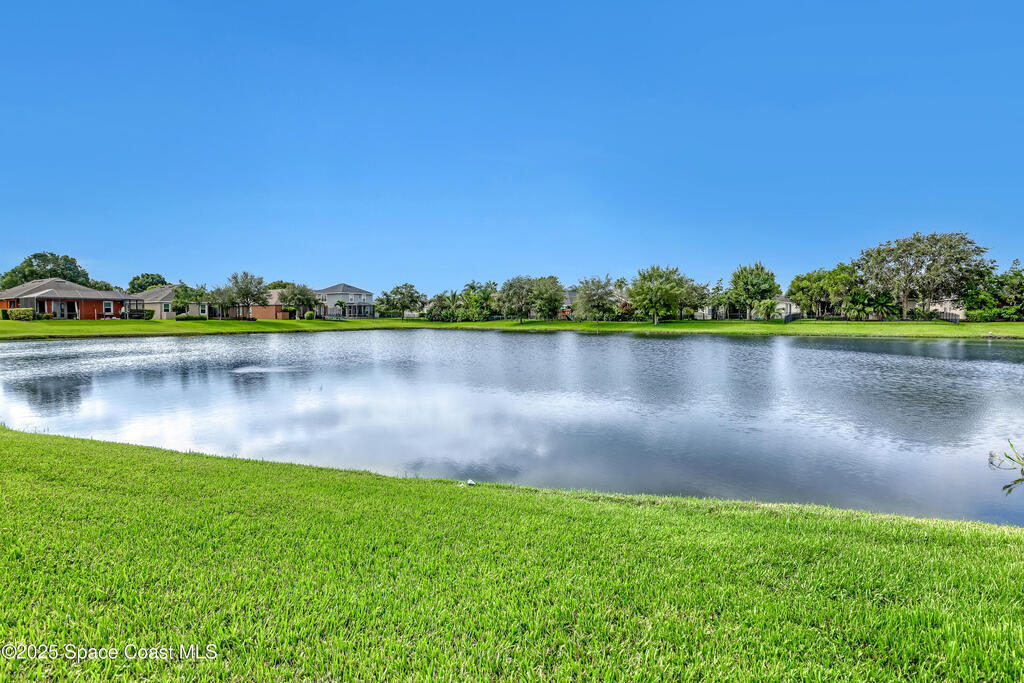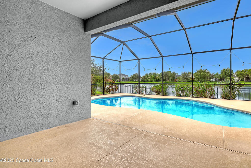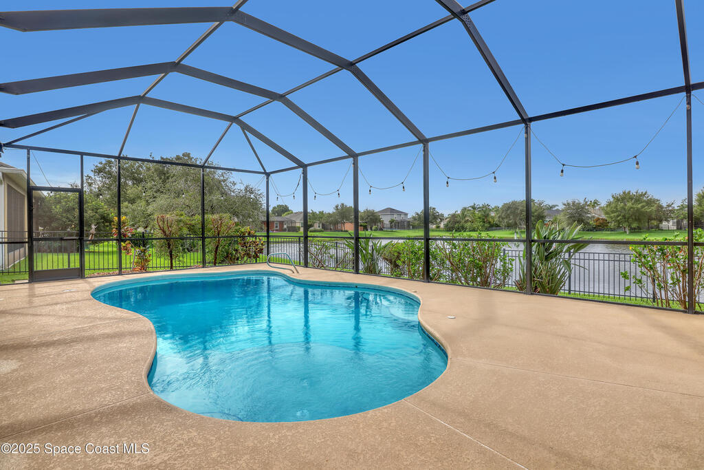 Verbal agreement reached. Awaiting signatures. Lakefront 4 bed 3 bath pool home! Prime location near ''A''Rated Viera Schools & nestled within the highly sought-after gated community of Daintree Subdivision in Viera.This stunning home features a private screened-in pool overlooking serene lake views, creating a peaceful oasis right in your backyard. This outdoor space is perfect for unwinding or entertaining guests. Inside, the open floor plan seamlessly connects the living, dining, and kitchen areas. The kitchen is beautifully appointed with 42'' cabinets, granite countertops, and a convenient breakfast bar. This spacious home offers 4 bedrooms, 3 baths, a dedicated office space, and a two-car garage with overhead racks. The primary suite is a luxurious retreat with a large walk-in closet and a master bath featuring a jetted tub, a tiled shower, & double sinks with granite countertops.