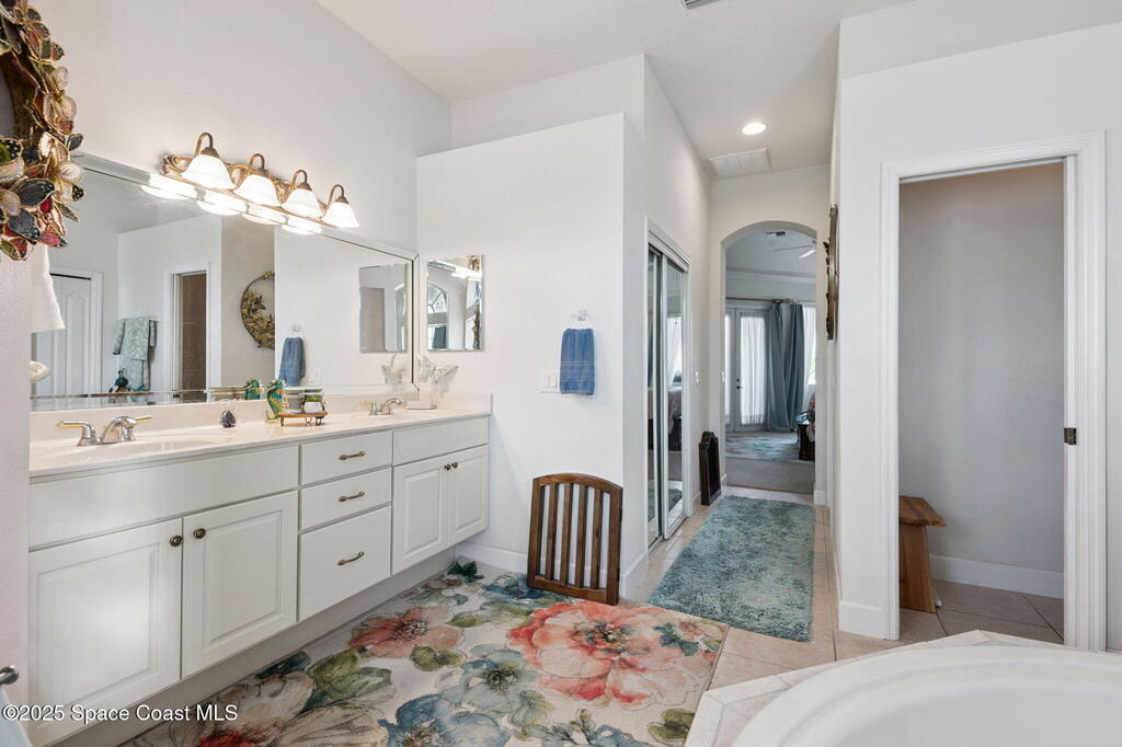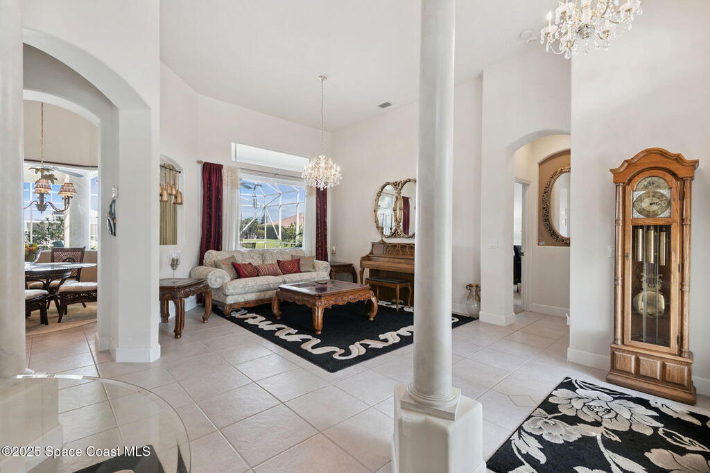 Welcome to luxury living in the heart of Suntree's prestigious gated community, St. Andrew's Isle. This beautifully appointed 4-bedroom, 3-bathroom estate with a 3-car garage offers the perfect blend of comfort, style, and functionality and designed for both entertaining and everyday living. From the moment you step inside, you're greeted by soaring ceilings, natural light, and an open, flowing layout. The formal living and dining rooms offer elegant spaces for hosting, while the expansive family room, complete with built-in speakers, overlooks the private, enclosed pool area for seamless indoor-outdoor living. The open kitchen is the heart of the home, featuring ample counter space, a breakfast nook, and direct views of the pool and spa, creating a true gathering space for family and friends. Tile flooring runs throughout the main living areas, with carpeting in the bedrooms for added comfort. The spacious primary suite is a private sanctuary, offering separate his and hers walk-in