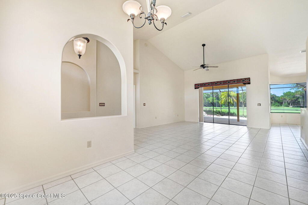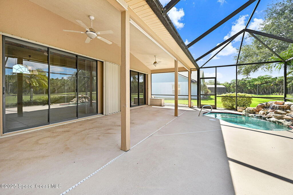 Located in the popular golf community of the Savannahs, this open concept home features 3 bedrooms, 2 baths and a unique grotto heated ''spool.'' Now is the perfect time to put your personal touches on this home with freshly painted interior and create your own style. The home is light and airy with cathedral ceilings and split floorplan. The primary bedroom has sliders to the patio with beautiful views of the golf course. There are his/hers walk in closets, private bathroom with soaking tub, dual sinks and separate shower and water closet. The grotto ''spool'' is heated in the winter, and cool in the summer, providing year-round pleasure without the maintenance of a large pool. The large screened in patio, is an outdoor retreat area to entertain or relax with a front row seat to the 2nd green. Rocket launches from your backyard provide thrill and excitement. Roof is 2017, A/C 2007, 2 car garage and dedicated laundry room. Affordability is possible in this prestigious golf community!