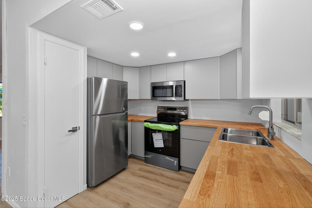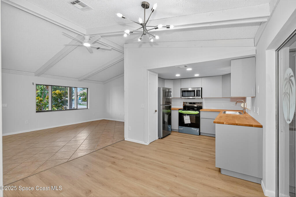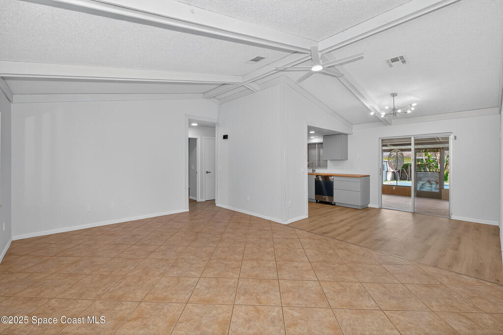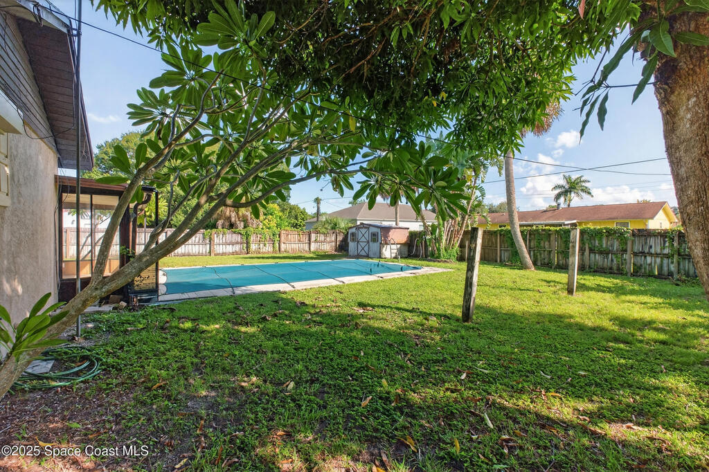 Welcome home to this beautifully remodeled Palm Bay residence! Featuring brand-new floors throughout and a stunning kitchen with new cabinets, stainless steel appliances, and a washer & dryer. The spacious living area boasts high vaulted ceilings that fill the home with natural light. Step outside to your private backyard retreat with a sparkling pool and a fully enclosed patio -- perfect for relaxing or entertaining year-round.Ideally located in Northwest Palm Bay, this home offers easy access to local parks, shopping, restaurants, and major routes including Malabar Rd and I-95. Just minutes from schools, the Indian River, and a short drive to the beaches. Move-in ready and perfect for Florida living at its best!
