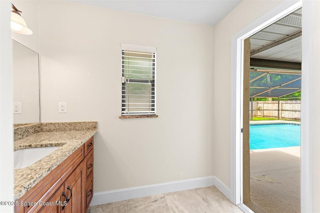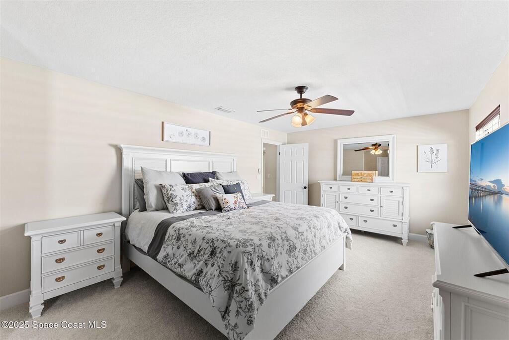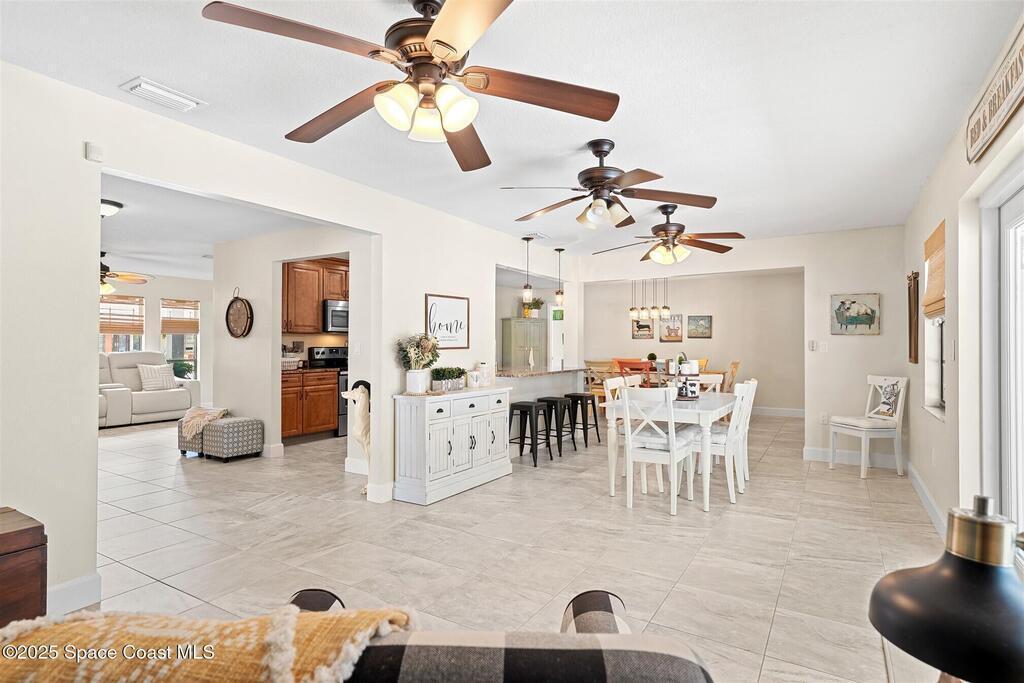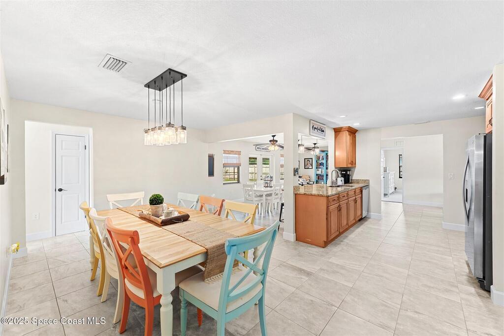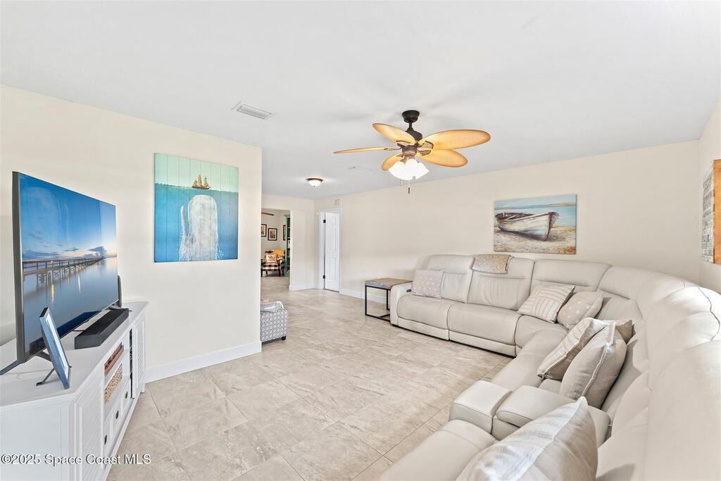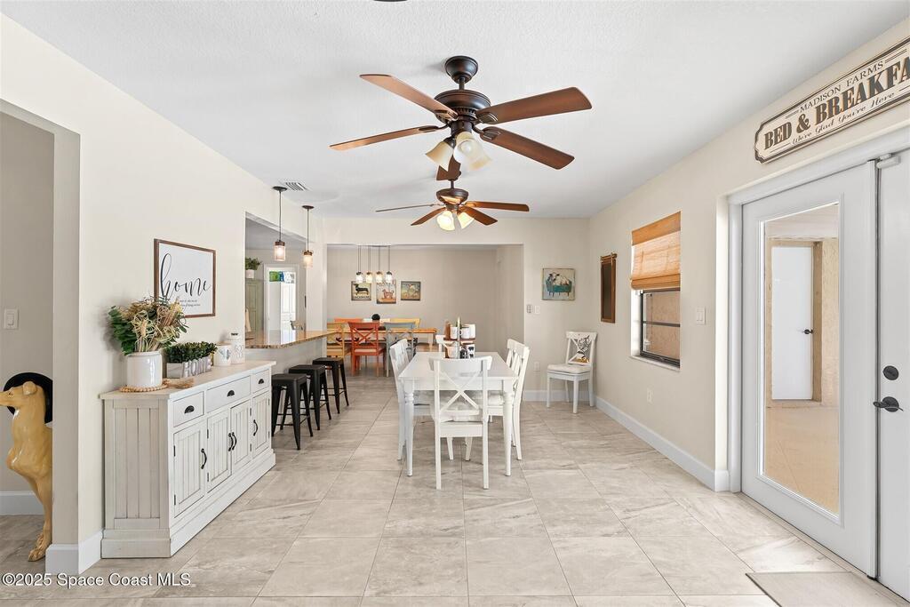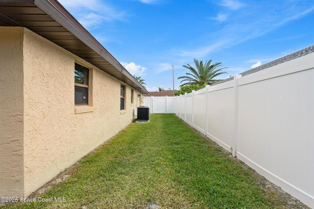 Welcome to 2275 Sykes Creek Drive in Merritt Island, a beautifully maintained home nestled in a quiet neighborhood just minutes from shopping, dining, and the beaches. This move-in-ready property offers peace of mind with major updates, including a 2022 roof, brand-new 2025 A/C, 2024 pool pump, updated electrical panel, and a resurfaced pool (2025). Inside, you'll find new carpet, freshly painted spaces, and a bright, open layout designed for comfort and easy living. Enjoy the versatile sunroom, perfect for relaxing or entertaining, overlooking your private, fenced backyard and sparkling pool. The primary bedroom suite features a walk-in closet and a separate powder vanity, adding convenience and charm. Whether you're seeking your first home, a family retreat, or a peaceful Florida escape, this Merritt Island gem offers the ideal blend of style, updates, and location.