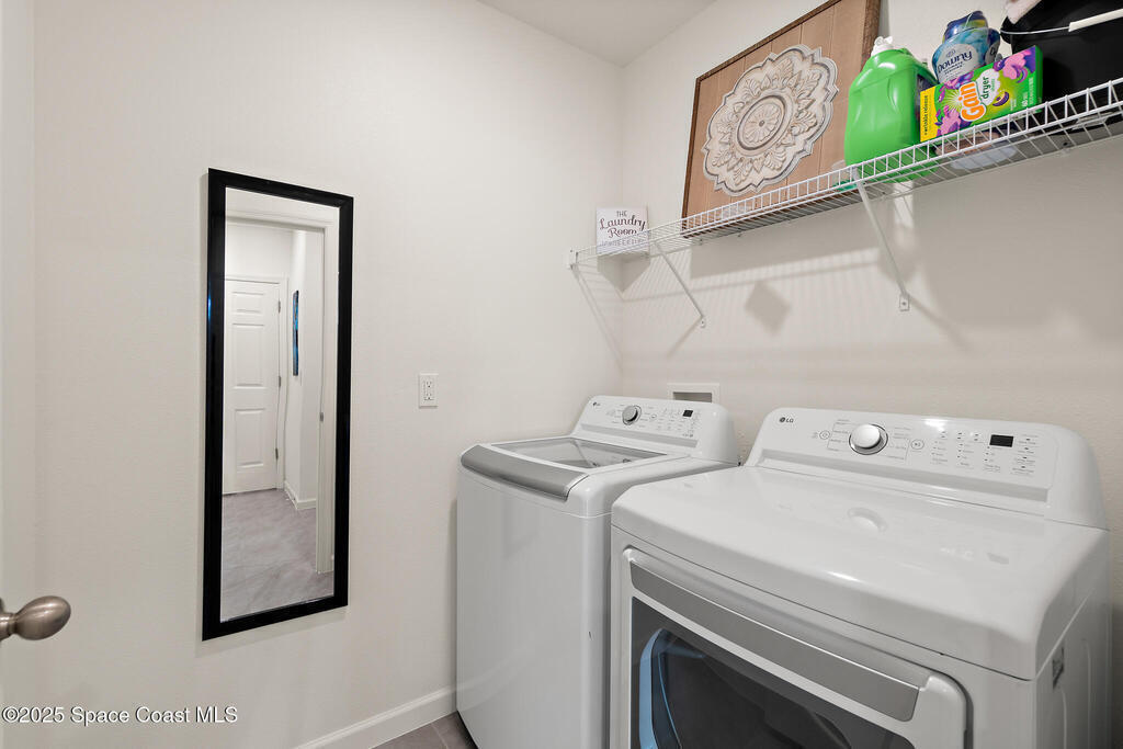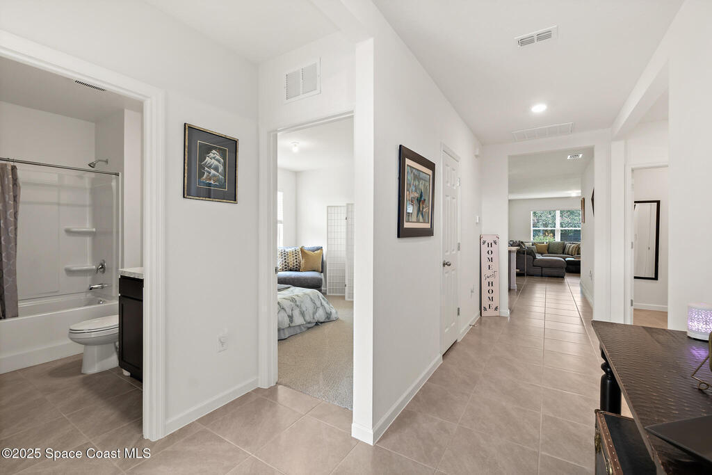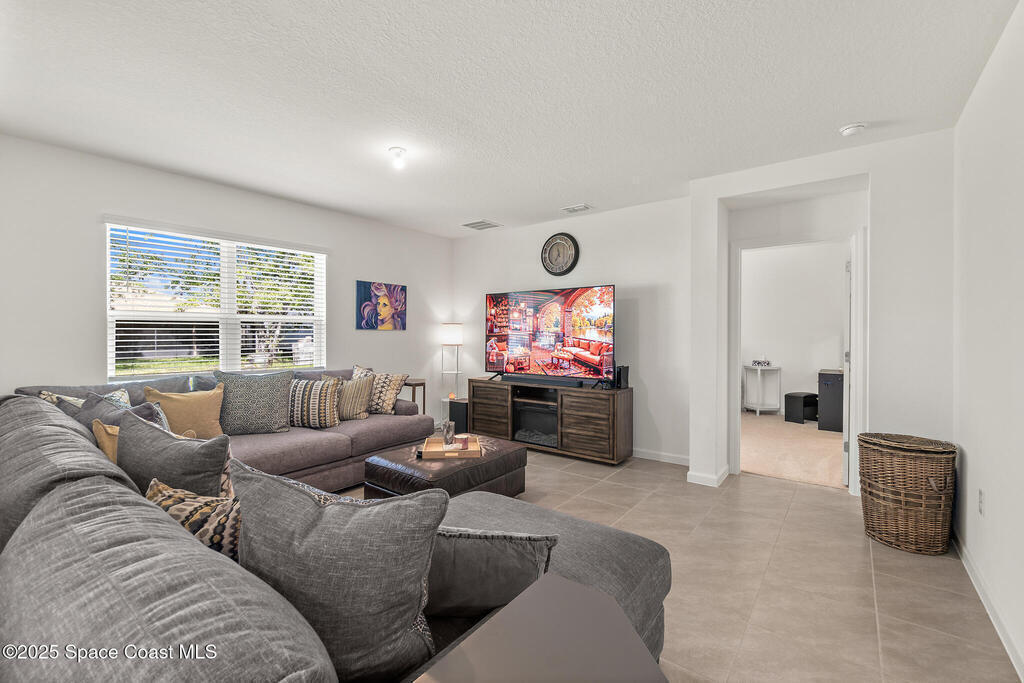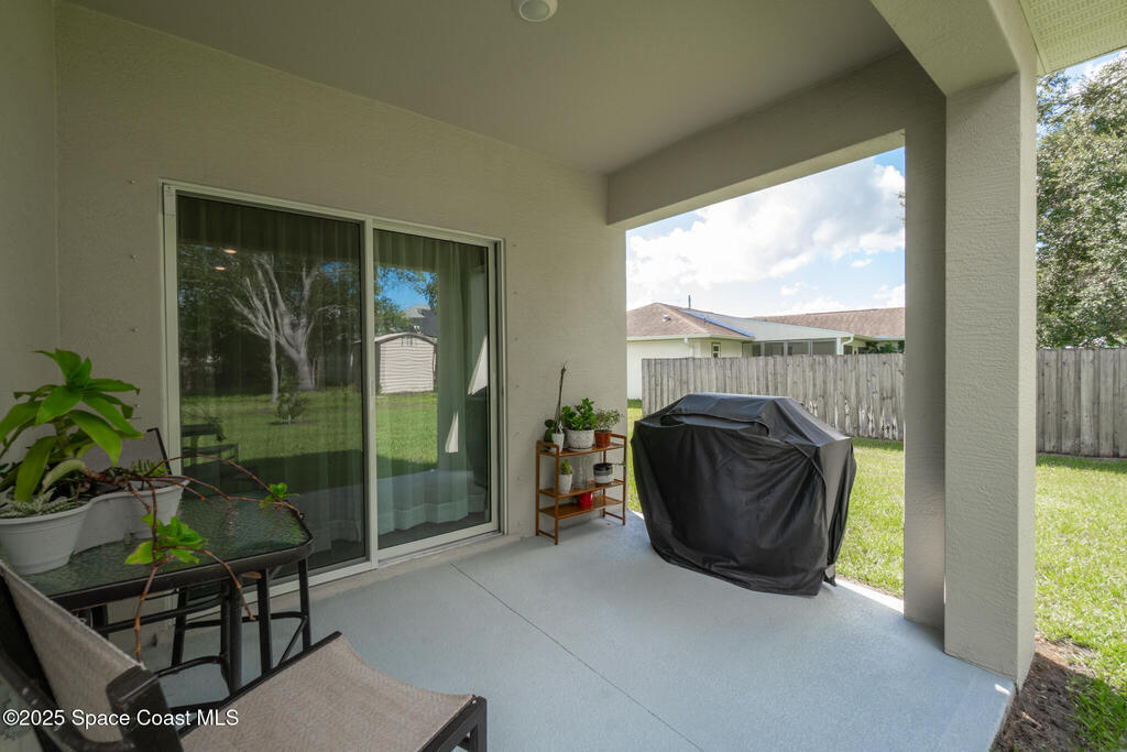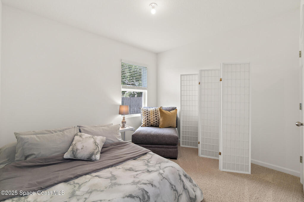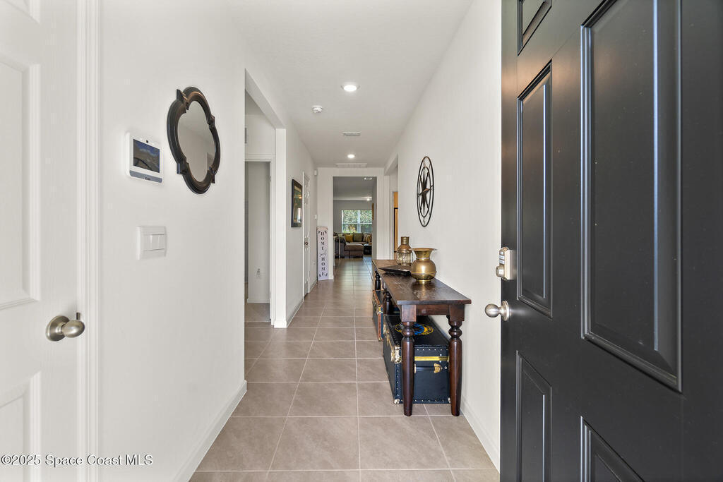 WHY WAIT for new construction when this one-year-old Cali model is already complete and move-in ready! Located on CITY WATER and SEWER--a major advantage over nearby homes on well and septic--this 4 bedroom, 2 bath, 2-car garage home offers modern living with no delays or added construction costs. Smart home has Oolsys IQ panel, Alarm.com app, video door bell & more! See features list! The open floor plan features a large kitchen island, walk-in pantry, and spacious living area filled with natural light. The primary bedroom accommodates king-size furniture with ease and includes an oversized walk-in closet and a large en-suite bathroom with dual sinks and walk-in shower. Owner is installing ceiling fans in all bedrooms and living spaces (excluding bathrooms), providing comfort and efficiency. Close to shopping, dining, and everyday amenities, with quick access to I-95 for commuting, travel, and access to beaches, major employers, and Orlando attractions.