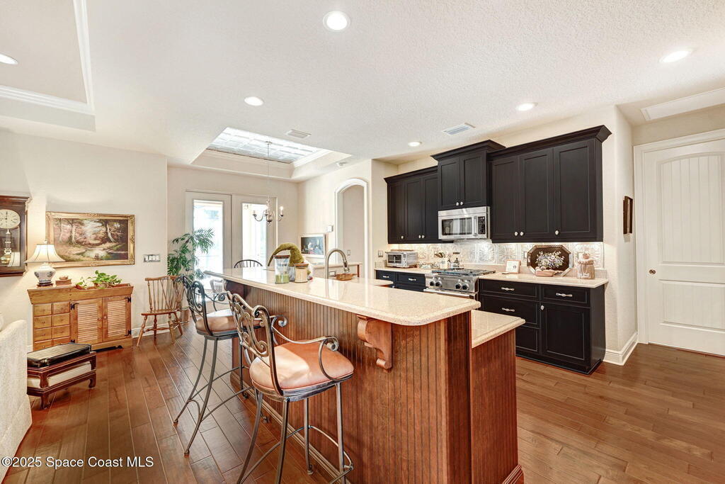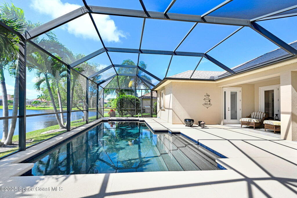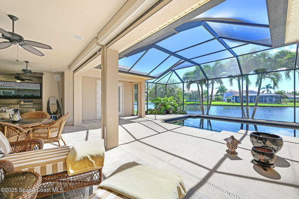 Impeccably cared for, this DiPrima custom-built home seamlessly combines refined LUXURY with everyday COMFORT and TRANQUIL Lake views. With superior craftsmanship, thoughtful design and high-end finishes, you will not be disappointed! The Gourmet Kitchen will inspire any chef with a dual fuel gas range, quartz countertops, two-tone custom cabinets, glass front doors & walk-in pantry. An open floor plan integrates the kitchen, family and dining areas for a harmonious flow of space. Architectural features include 10' tray ceilings, 8' interior doors, archways, transom windows & double French doors to the patio. The outdoor living area centers around a beautiful black-bottomed, solar-heated saltwater pool and cabana suite offering a private retreat with one bedroom & full bath. The large screened patio and well-appointed summer kitchen-with grill, mini refrigerator, & sink provides plenty of space to gather and enjoy. Whole house generator, hurricane protection, extended Garage &more