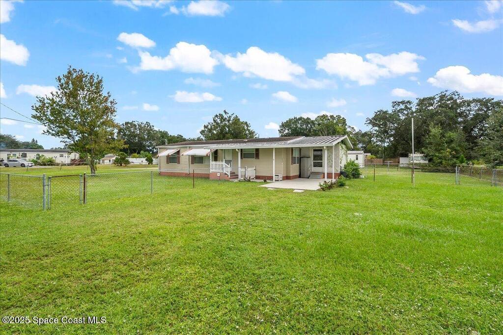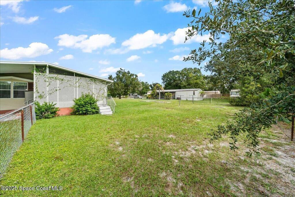 Spacious 3BR/2BA manufactured home on a rare .43-acre oversized lot! Enjoy NO HOA and no land lease; and plenty of room for RVs, boats, and trailers with easy access parking on this large corner lot. The fenced yard offers privacy and space to add a pool, workshop, or garden. Inside, an open floor plan features a bright living area, eat-in kitchen, and comfortable bedrooms. Furnished and move-in ready! Ideal for homeowners, investors, or snowbirds. Conveniently located just 20 minutes to Cocoa Beach, 25 minutes to Kennedy Space Center, and 40 minutes to Orlando International Airport (MCO). Experience Florida living with space, flexibility, and freedom--don't miss this property with endless potential and room for all your toys!