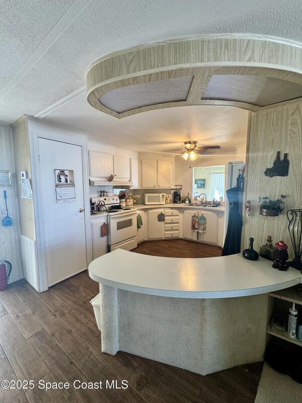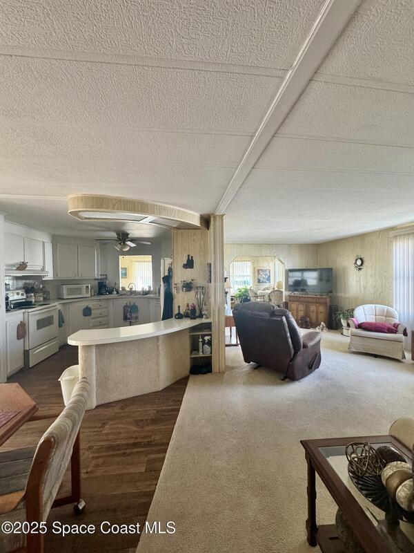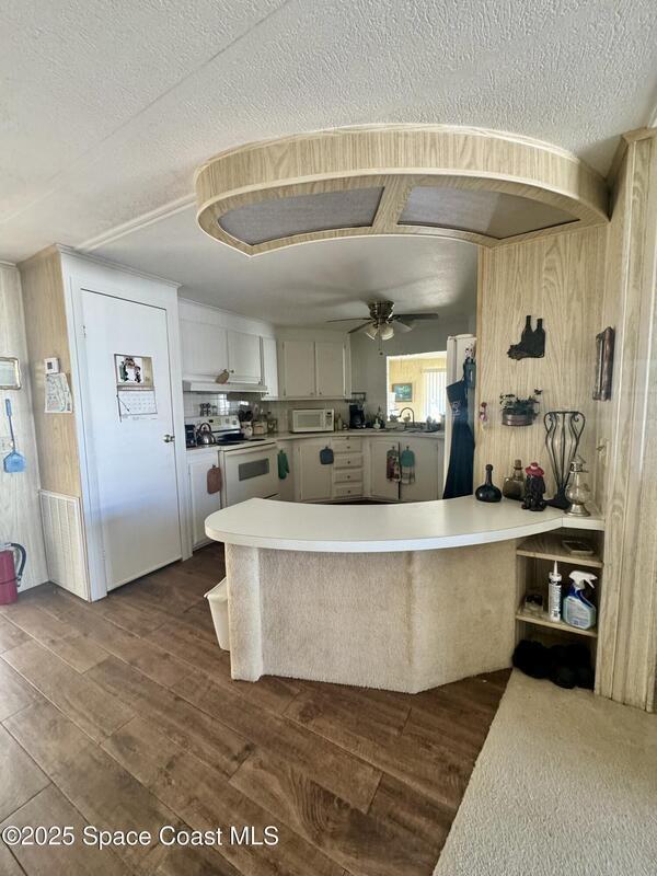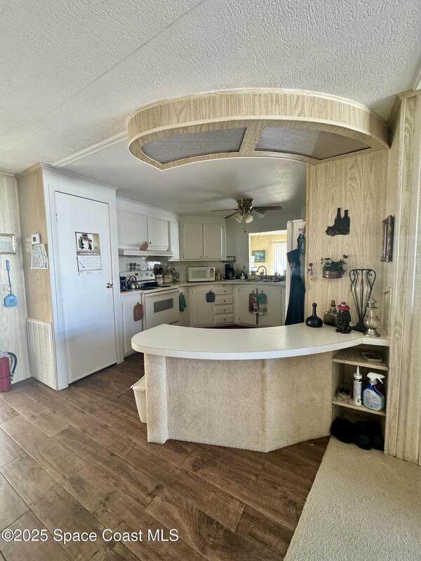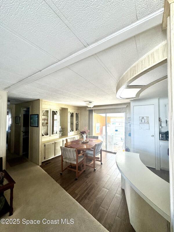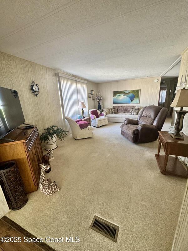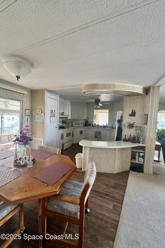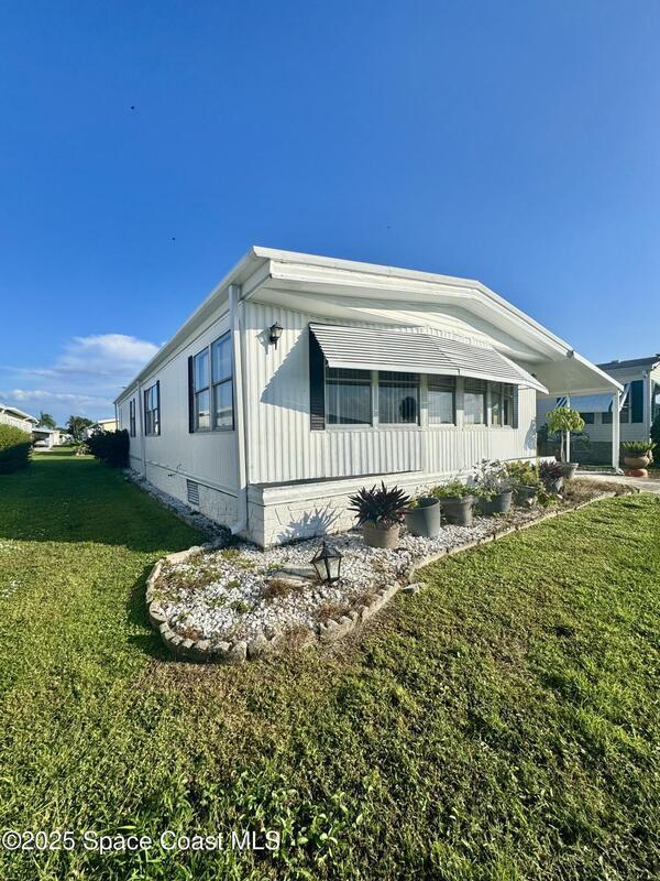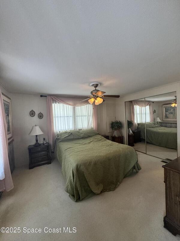 Welcome to the vibrant Barefoot Bay community! This 2-bedroom, 2-bath home sits across from the golf course, offering lovely views and endless potential. Featuring a bright, open layout with a spacious kitchen overlooking the dining area and a large front bonus room, this home is ready for your personal touch and creativity. With a bit of TLC and vision, you can transform this space into your ideal Florida retreat. Perfect for first-time buyers, seasonal vacationers, or anyone looking for a great investment opportunity. Enjoy Barefoot Bay's incredible amenities three sparkling pools, lounges, golf, bocce, horseshoes, tennis, fishing pier, private beach access, clubhouse, walking paths, clubs, mini golf, and stunning Florida sunsets by the lake. Motivated seller bring your best offer!