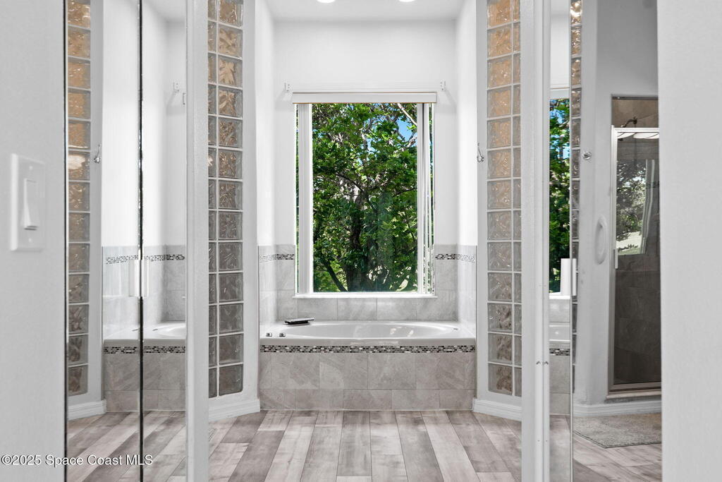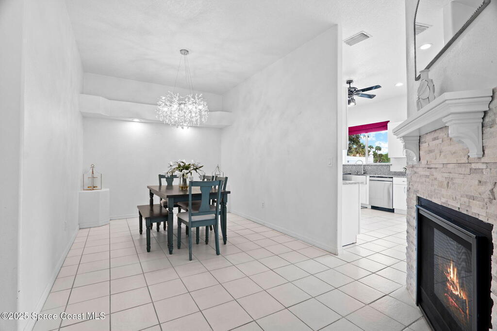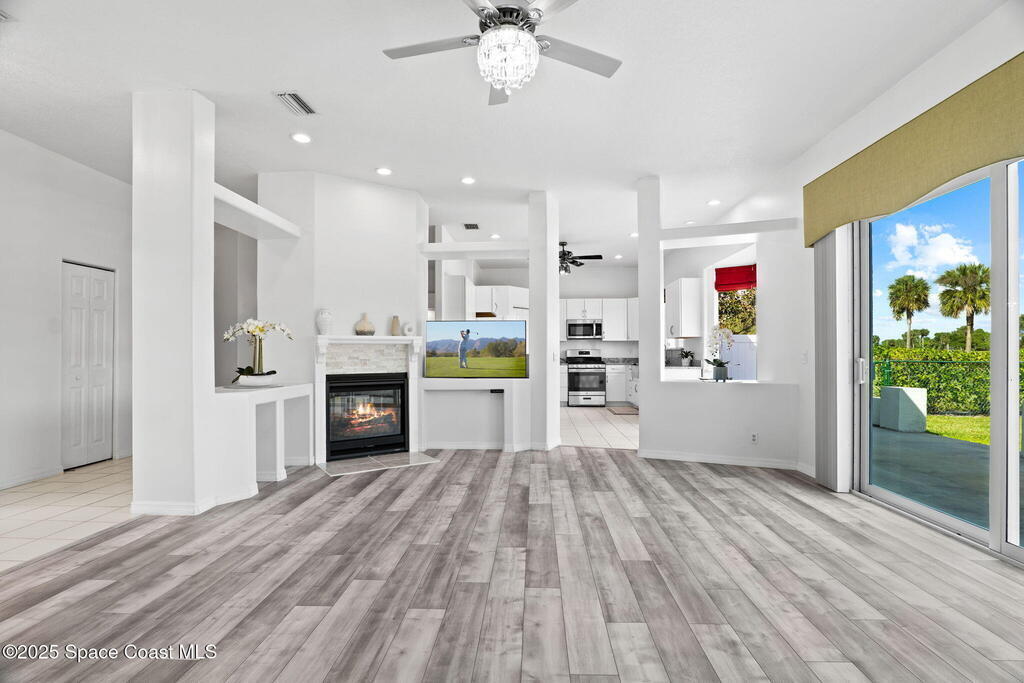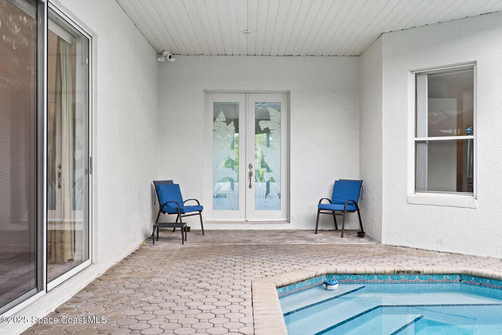This home is located on a beautiful 18-hole course with a friendly clubhouse that serves food and drinks. Bar also has weekly Texas Hold'em, darts, trivia and other community activities. NO FLOOD INSURANCE IS REQUIRED FOR THIS PROPERTY! In addition, it has an enclosed INDOOR HEATED POOL that ensures complete privacy. There is also a hot tub that waterfalls into the pool. The pool house can serve as a fourth bedroom with half bath and poolside shower. The master bedroom boasts a spacious bathroom with two walk-in closets. Both living room and kitchen are spacious with window treatments and appliances. There is a two sided gas fireplace facing the living room and dining room. Space coast GC is one of the few golf courses in Florida that allows a fenced back yard. The backyard is fenced in and surrounded by Hibiscus bushes with beautiful unobstructed views. Golf course is currently doing a $4,000,000 upgrade. All dog breeds accepted! Cocoa Beach and Port Canaveral are just minutes away