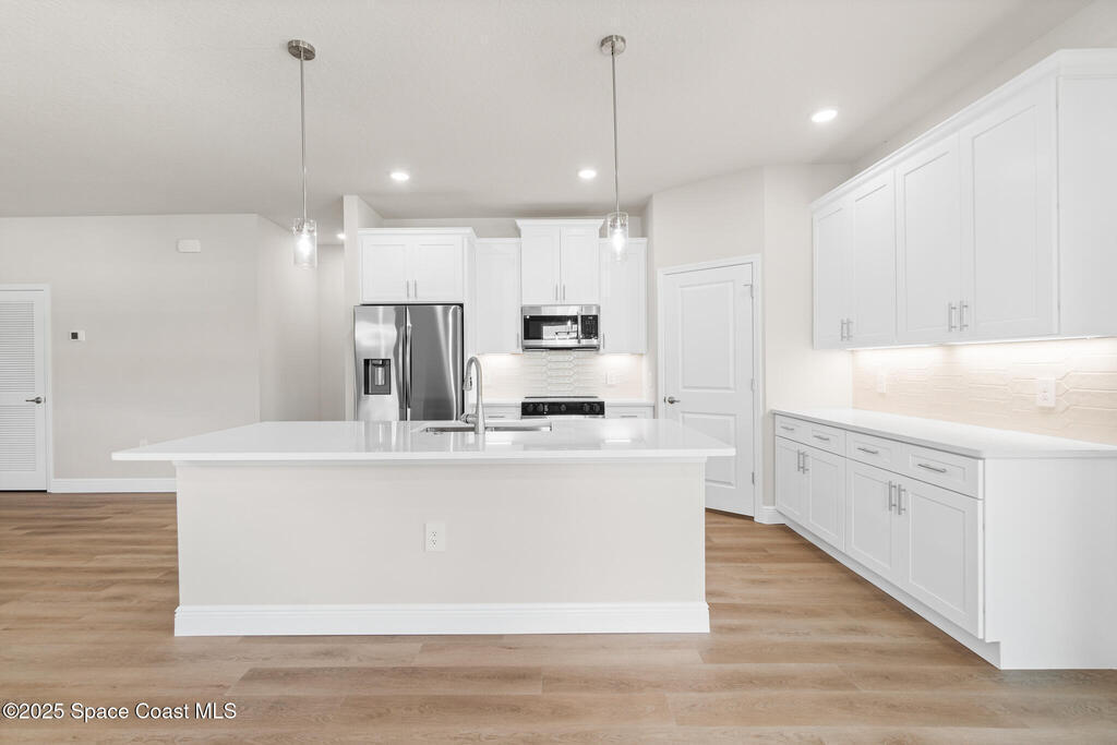 Ask us about our incentives, builder paid closing costs, & no down payment options when financing through the builder's preferred lender. This stunning new construction home exemplifies exceptional craftsmanship with soaring ceilings, a spacious open-concept great room, and a chef-inspired kitchen featuring all-wood shaker cabinets with crown molding, dovetail soft-close drawers and doors, quartz countertops, and a premium Samsung stainless-steel appliance package. Natural light fills the home through large windows and sliders leading to the covered lanai, complemented by luxury vinyl flooring throughout, tile in wet areas (no carpet!), and bathrooms with quartz-top vanities and fully tiled showers--no inserts. If you're searching for superior quality, thoughtful design, and unbeatable value, this is the home for you!