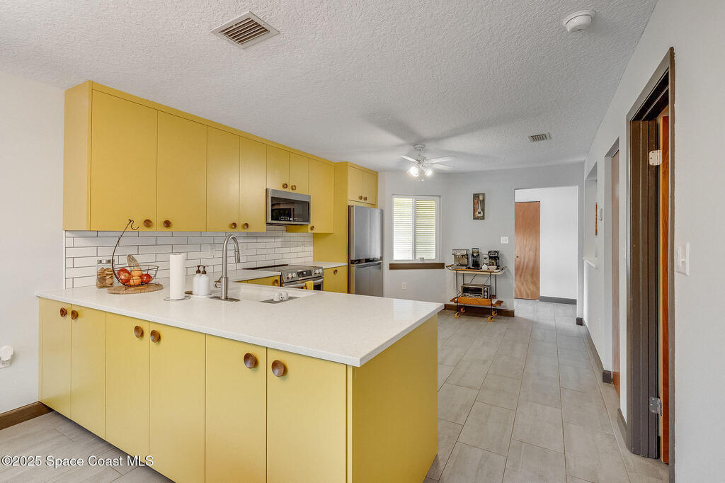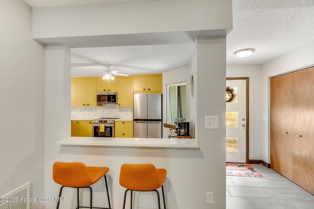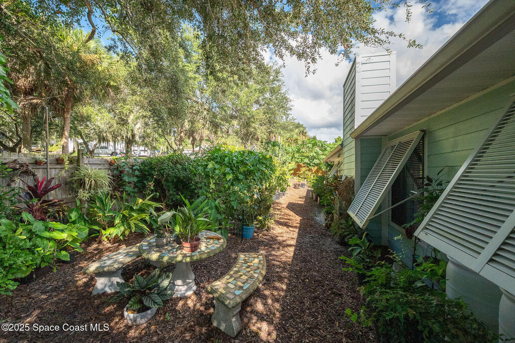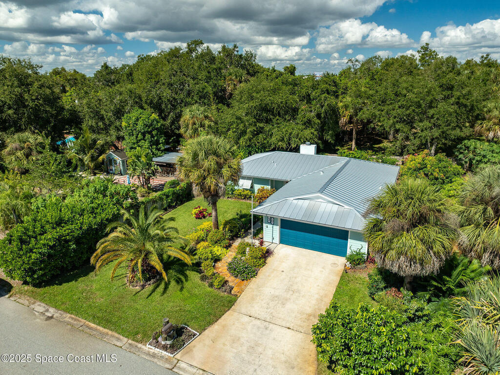 Discover this mid-century modern gem tucked away in a quiet Rockledge neighborhood, just steps from scenic Historic Rockledge Drive! Built in 1985, this home blends timeless style with fresh updates, including brand-new Hardie Board siding and a fully fenced yard filled with native Florida plants--papaya, mango, and avocado trees included. Inside, you'll find cool, modern flooring throughout and a newly remodeled kitchen featuring quartz countertops and vibrant cabinetry that set the tone for the home's unique vibe. The split floor plan offers both privacy and flow, with a cozy fireplace adding warmth and character. Enjoy the relaxed, creative feel of this special property in one of Rockledge's most sought-after areas. Standing Metal Seam Roof installed in 2019. No electrical lines either!