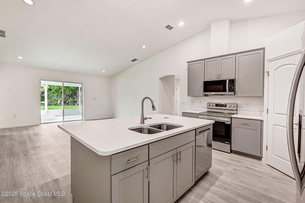 Stone Accents Welcome you to this Spacious, Brand New 4 BD/3BA Home with 2-car garage & large 20x12 trussed covered screened porch--perfect relaxing outdoors. The open-concept island kitchen features quartz countertops with undermount sink & level 2 cabinets with soft close & crown molding, stainless appliances (including a 25-cu. ft. fridge) plus corner pantry. Durable Mohawk Revwood plank floors flow throughout with tile in baths & laundry. The 4th bedroom private bath with a 5' tile shower! The primary suite offers a tray ceiling, huge walk-in closet, & a tiled 5' shower. Other Features: Garage Door Opener, Attic Stairs, Marathon Water Treatment System, Rounded Drywall Corners, Backyard Flood Lights, Dimmable LED lighting in Great Room & Primary. Kitchen & baths vent outside Inside laundry with 5' of Cabinets. 1-year Builder/10yr structural warranty. . Limited-time: $15K Flex Funds or reduced 30-year rate with preferred lender for qualified buyers!