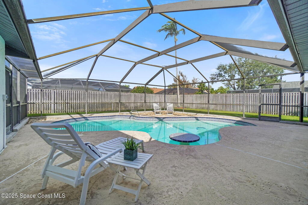 Welcome to this stylish Melbourne pool home with an outdoor Oasis! Beautifully maintained 4-bed, 2-bath home featuring a bright split floor plan and thoughtful upgrades throughout. Enjoy a sparkling screened pool with covered patio, perfect for relaxing or entertaining. A 9x40 concrete slab offers ideal RV or boat parking, while a 10x20 shed adds extra storage for tools or hobbies. The 80-ft well supplies irrigation and pool refills, and the Generac generator provides peace of mind for most items in the home year-round. Inside, find a spacious laundry room with built-ins, open living areas, and a p