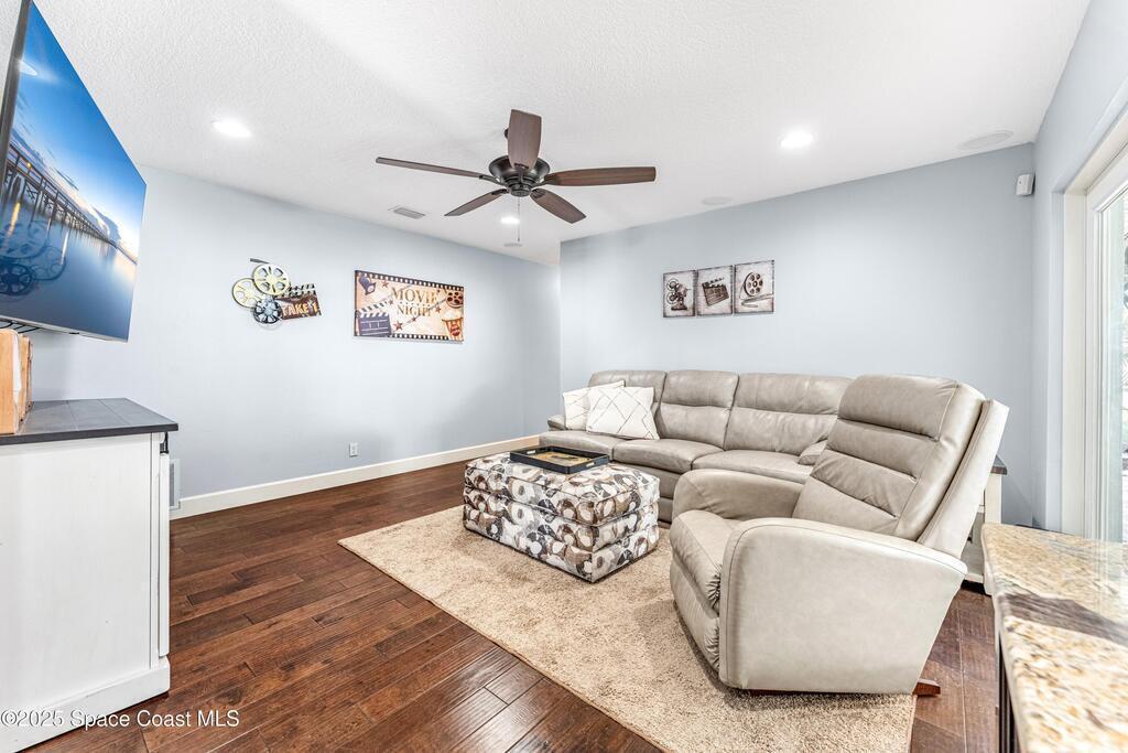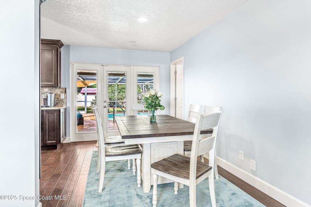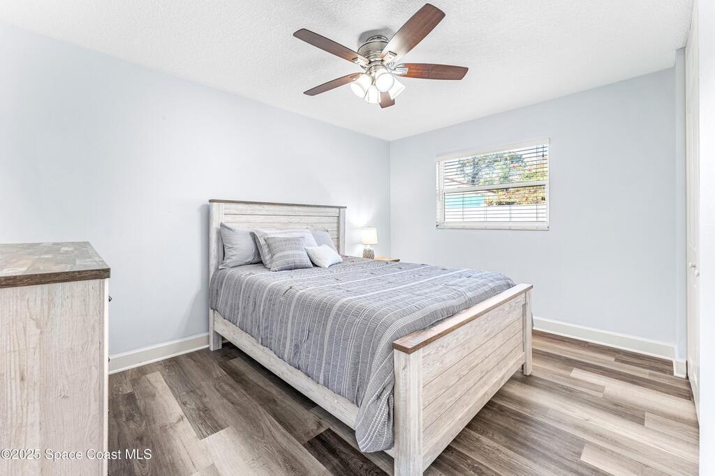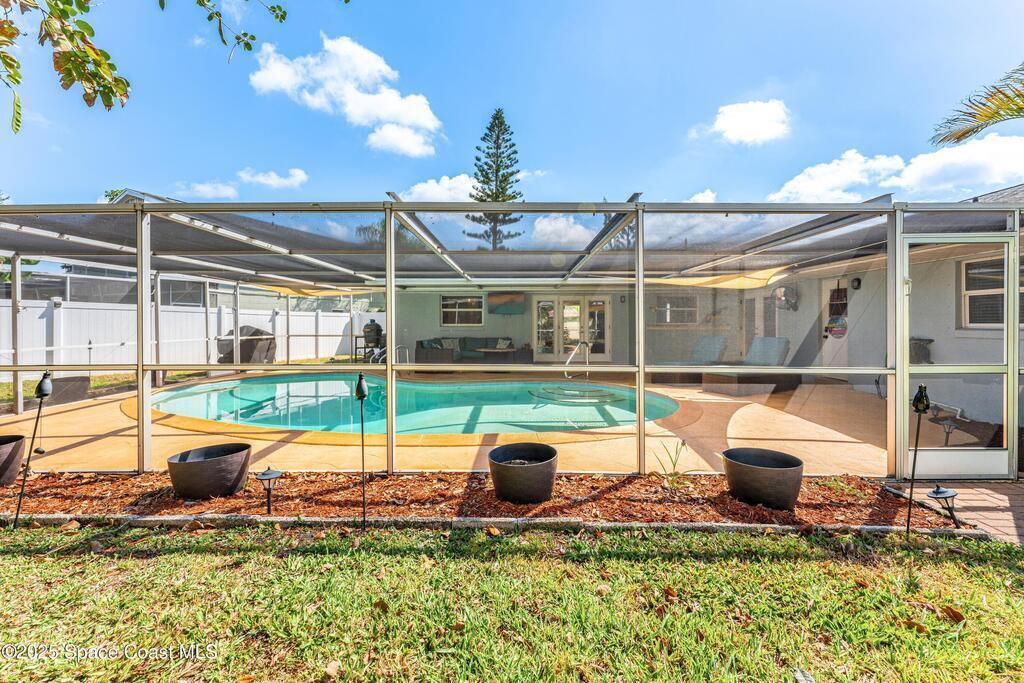 Villa De Palmas! Well appointed home fully remodeled Pool home featuring 4 bed/2 bath and a fenced in Private Yard Waterproof, stain resistant wood floors in the main living spaces and primary suite. HUGE kitchen has soft close, wood shaker cabinets, upgraded hardware, electric range overlooking the family room, double oven, granite countertops with matching backsplash, and more! Primary suite with double sinks and walk-in shower with decorative tile. Massive back yard, with brand new white vinyl privacy fence, and workshop w/ electricity and water. The screened pool has hookups for electric heat (if desired), and the oversized patio is perfect for gatherings and parties! Heated Pool and so much more located close to Shopping, Beaches ,Golf and more!