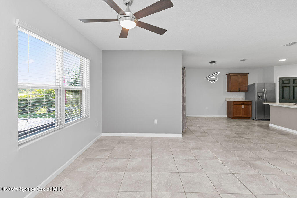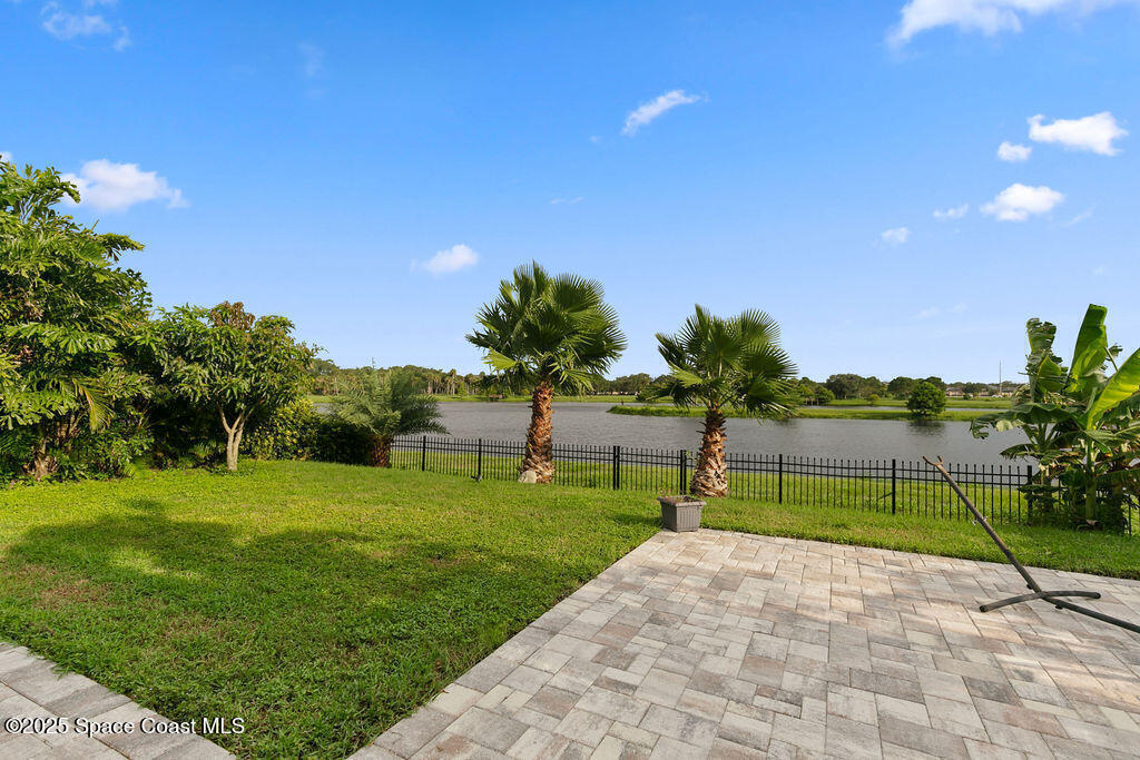 Welcome to this beautifully maintained 4-bedroom, 2-bath lakefront Smart Home offering comfort, style, and serene water views. This open-concept Cali model features ceramic tile flooring throughout, a spacious kitchen with a large island, 36'' cabinets with crown molding, and stainless-steel appliances. The living and dining area open to a Plexi glass screened-in lanai overlooking the lake. The primary suite includes a walk-in shower, double vanity, oversized closet, and extra linen storage. All the extra perks have been done for you! Storm shutters, light fixtures, window treatments, security system, ceiling fans and more. Enjoy the backyard, which has been fully fenced with wrought iron along with a paver patio. Just minutes away from Cocoa Village, Dr Anderson Park, Beaches, Orlando and Airport.