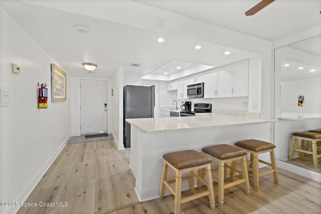 This fully remodeled 8th-floor gem at Canaveral Towers puts you in the middle of all the action, watch rockets soara and return from your condo while sipping your morning coffee. Ocean views? Check. View of Port Canaveral and sunsets? You got it. Pool below? Absolutely.Inside, it's all about easy coastal living. Freshly updated kitchen rocks white shaker cabinets, gleaming granite counters, stainless appliances, and modern lighting. Smooth luxury vinyl flooring flows throughout, making cleanup a breeze for your rental guests.Here's the best part: this turnkey weekly rental comes FULLY FURNISHED and income-ready. Just hand over the keys and watch the bookings roll in. Space Coast tourists are hunting for exactly this prime launch views, beach proximity, and move-in-ready comfort.Whether you're building your rental portfolio or securing your own launch-watching retreat, this condo delivers stellar returns and out-of-this-world views. Don't miss liftoff on this opportunity!