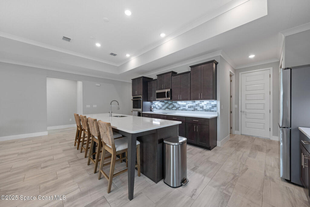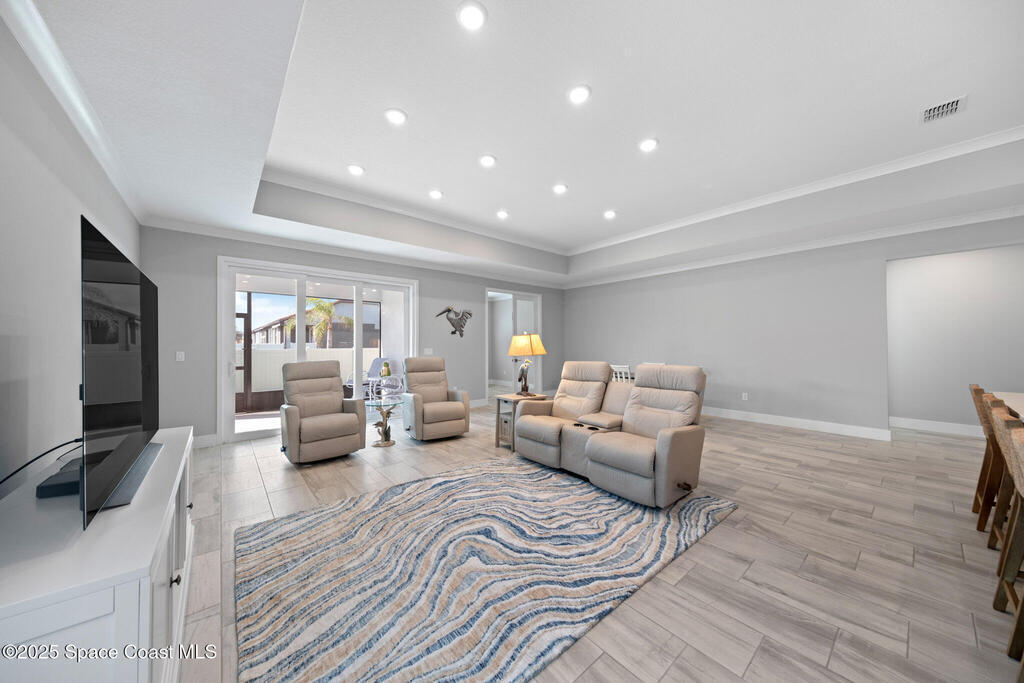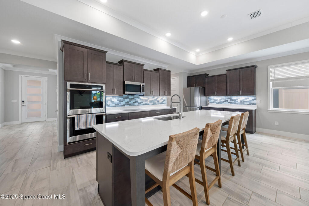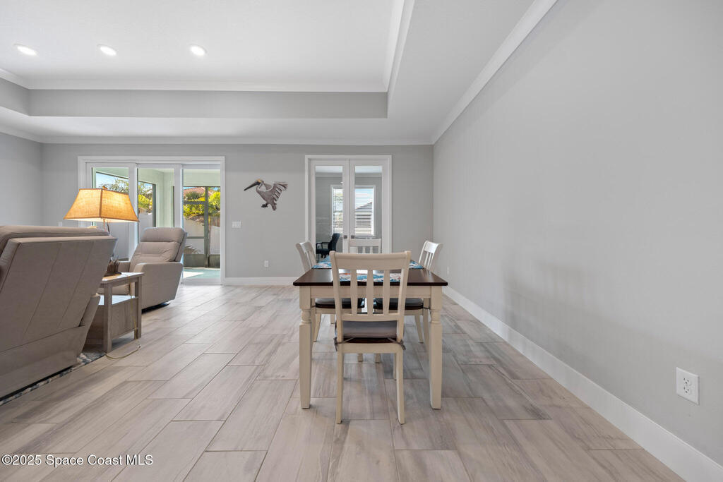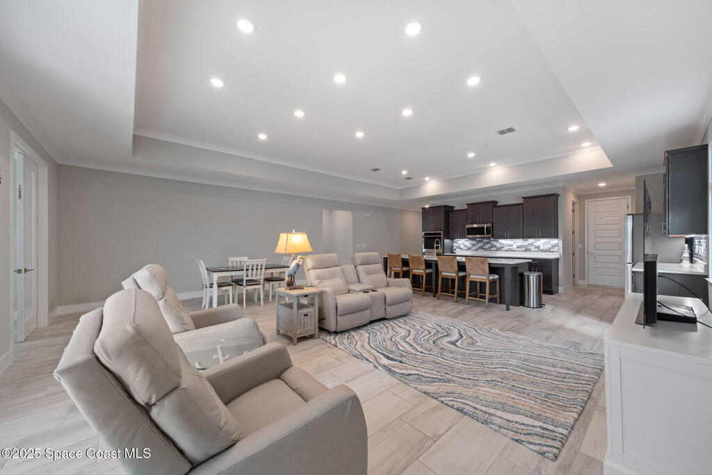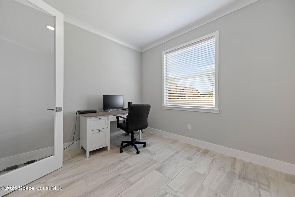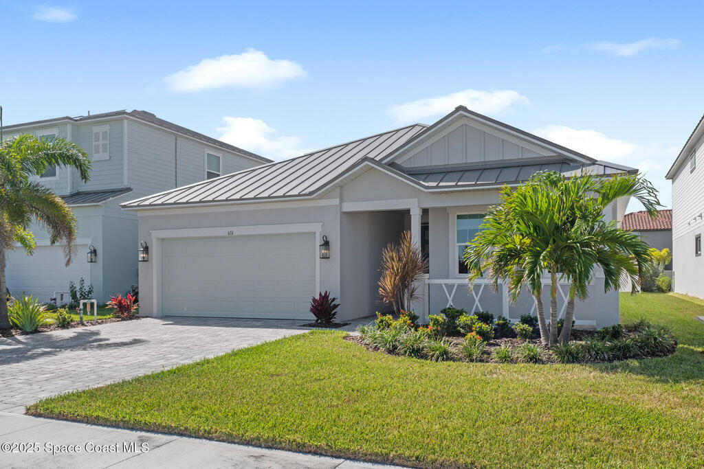 Just steps from the beach, this beautiful coastal contemporary home, built in 2023, offers the perfect beachside retreat. Featuring 3 bedrooms, 2 bathrooms & a dedicated home office, it's ideal for relaxing and working from home. The open living area is filled with natural light, vaulted ceilings & stylish tile floors. The chef's kitchen provides quartz countertops, stainless steel appliances, a built-in double oven, a butler's pantry & a large island with bar seating--perfect for gatherings. The primary suite provides a spa-like en suite and a spacious walk-in closet, while two additional bedrooms & the bright office offer flexible spaces for family and guests. Enjoy added convenience with a community pool, a 5' extended garage, impact windows & doors & modern finishes throughout. Located within walking distance to the beach, shopping, & dining & just a mile from Patrick Space Force Base, this home combines coastal charm with modern comfort for the ultimate relaxed lifestyle.