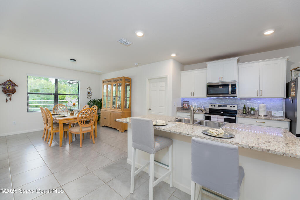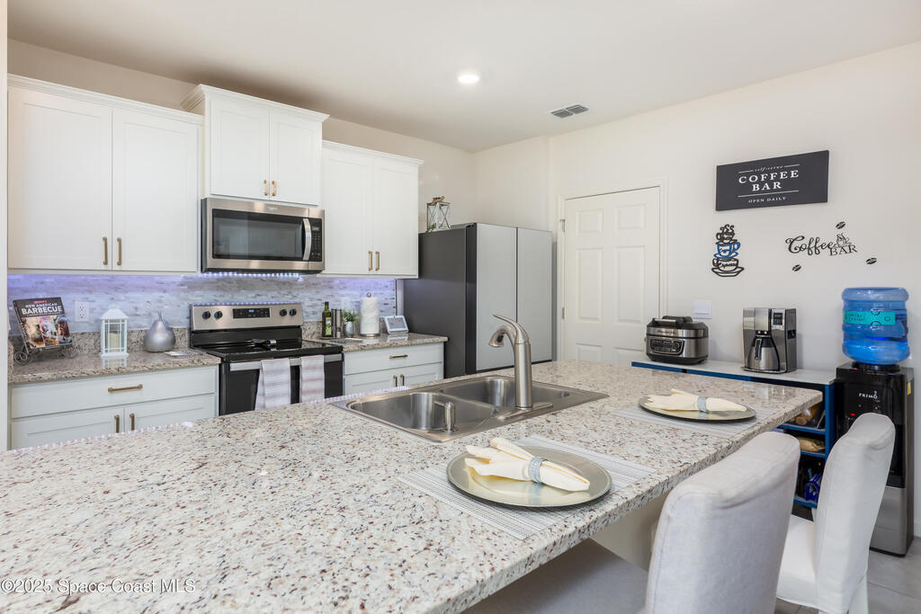 Welcome home to this FULLY FURNISHED, Move-in ready 2022-built, energy-efficient smart residence in The Preserves at Stonebriar Phase 2. Featuring 3 bedrooms, 2 baths, and impact windows throughout, this property blends modern design with sustainability--powered by a solar system that virtually eliminates electric costs. The open floor plan showcases a modern kitchen with granite counters, stainless-steel appliances, and Alexa-controlled lighting. Enjoy a spacious living area with Bose surround sound and Smart TVs, plus a screened patio perfect for Florida evenings. Set within a gated community, playgrounds, and clubhouse--close to shopping and dining.