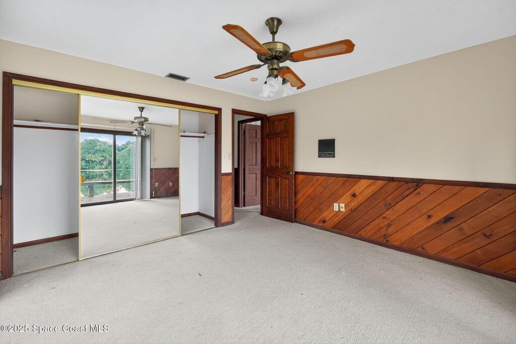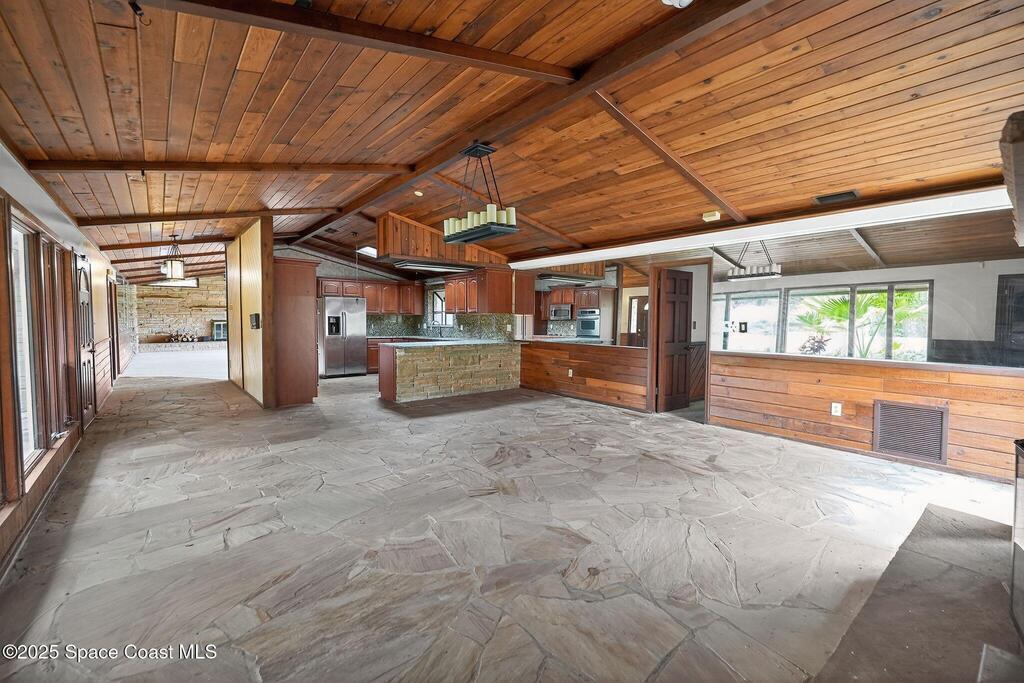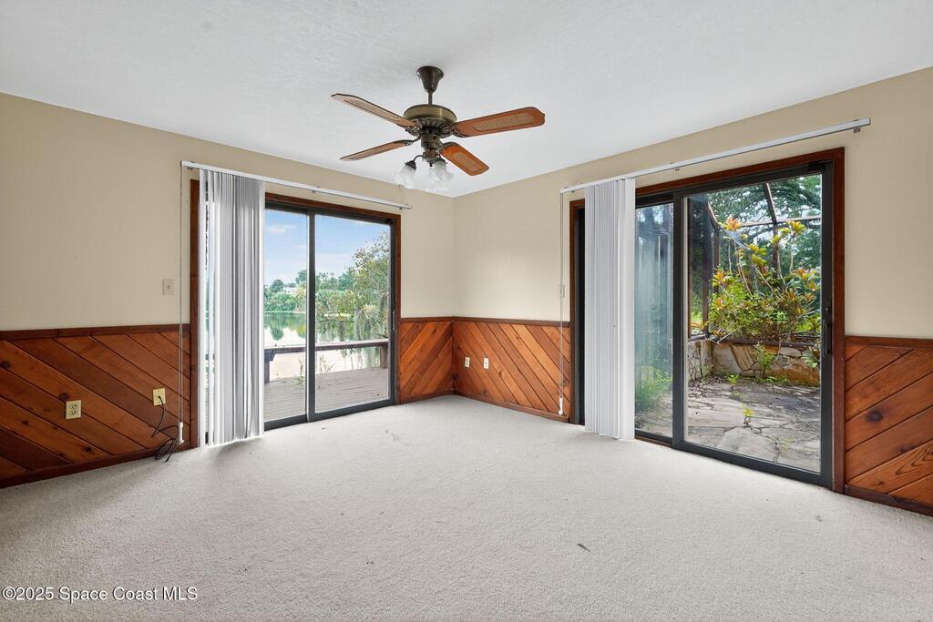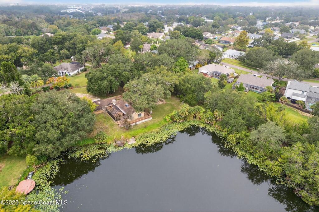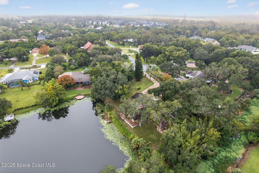 Where architecture meets nature, this rare mid-century modern retreat offers privacy, water views, and timeless design on 1.62 acres at the end of a secluded cul-de-sac. Floor-to-ceiling glass captures panoramic views of a peaceful non-motorized pond surrounded by mature trees, creating a private sanctuary perfect for paddleboarding, wildlife watching, and quiet reflection. The striking architecture features cedar tongue-and-groove ceilings, split-stone fireplaces, and a seamless indoor-outdoor flow. A dramatic family room with soaring ceilings anchors the home, while the private primary suite opens to nature with its own outdoor hot tub. Multiple decks and a screened atrium connect every space to the surrounding landscape. Located near downtown Titusville, waterfront dining, rocket launches, and nature preserves, this is more than a home--it is a lifestyle defined by serenity, design, and connection to nature.
