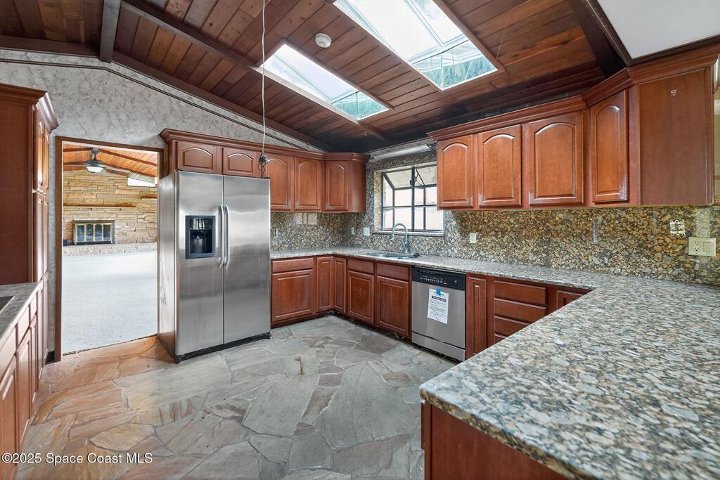 Ceiling Fan(s) , Eat-in Kitchen , Entrance Foyer , Primary Downstairs , Skylight(s) , Split Bedrooms , Vaulted Ceiling(s) , Walk-In Closet(s)
