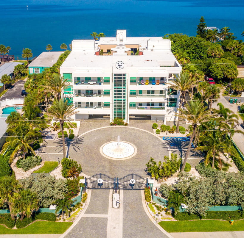 Villa Verde completed required structural integrity reserve study (SIRS) & determined there are no problems or deficiencies & reserves are in good standing, with no assessment anticipated & no increase in 2025 HOA fees! Situated on the shore of the Banana River & steps from the Atlantic Ocean, the residences at Villa Verde offer a luxurious coastal retreat for the most discerning buyer! The gated entrance features a lovely multi-story water feature & a central secured lobby with marble walls, imported limestone floors & a glass elevator with ocean views. Opulence abounds as you enter the unit! From marble inlaid & travertine flooring to 10' ceilings & walls of windows, the floor-plan offers open sightlines & loads of natural light. The designer kitchen boasts modern Poggen Pohl cabinetry, high-end appliances, & gorgeous granite. The great room & dining space invites large gatherings yet simultaneously suggest intimate moments when viewing stunning sunrises. The spacious primary suite