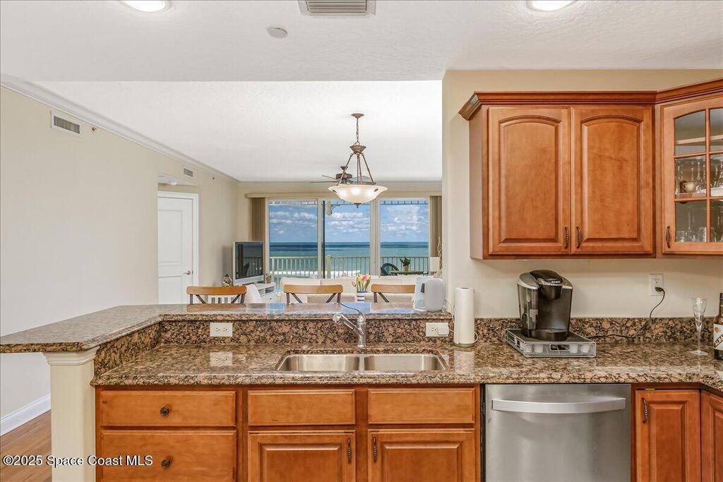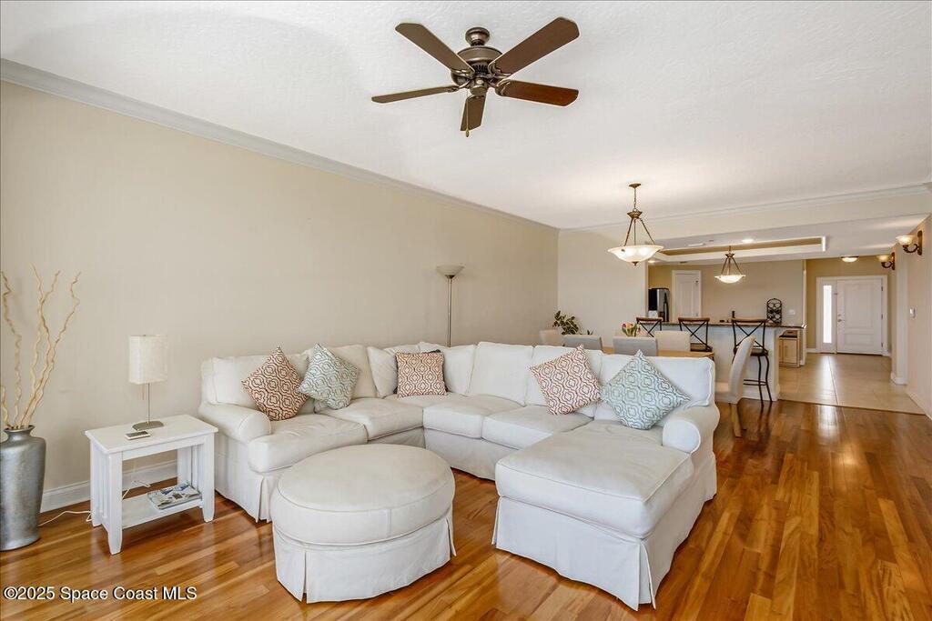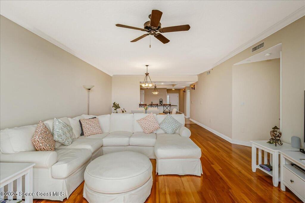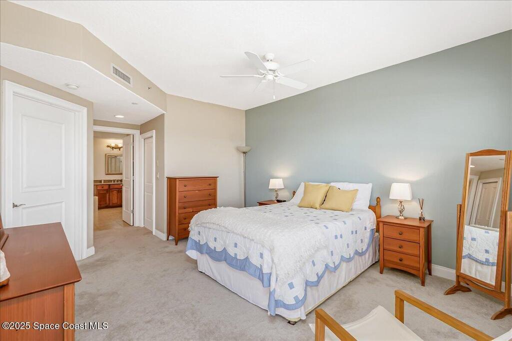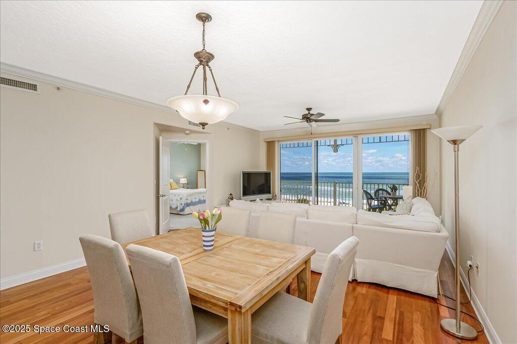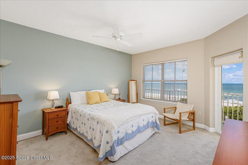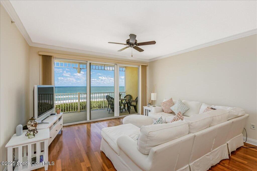 Penthouse condo with exceptional ocean views from both the main living area and the primary bedroom. This inviting 3-bedroom, 2-bath condo showcases breathtaking ocean views from the living area and the primary suite. The open-concept layout seamlessly connects the living and dining areas under soaring 9-foot ceilings with crown molding, creating an airy, light-filled retreat. Enjoy the protection and beauty of impact rated sliding glass doors and windows. Located in the heart of Indialantic, just a short stroll or bike ride to fine restaurants, boutique shopping, and local favorites. Downtown Melbourne is just over the causeway, offering dining, entertainment, and cultural experiences. Enjoy the convenience and security of under-building garage parking, two spaces included, private climate controlled storage unit, plus, heated pool, relaxing spa, clubhouse and fitness room with newly updated equipment.