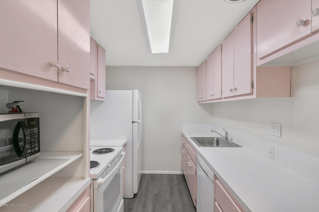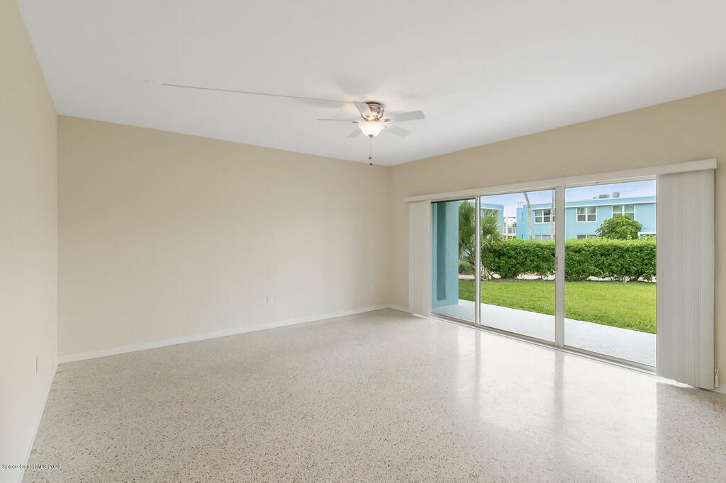 Whats not to love about this beautiful poolside 1 bedroom 1 bath condo. Very clean and Light and bright! Walk across the street to the beach! Hear the waves from your large porch. Full kitchen. Beautiful terrazzo floors. First floor unit, over looks pool, shuffleboard, community room and green space. Close to Space Force Base, shopping and restaurants. Pet free Community.