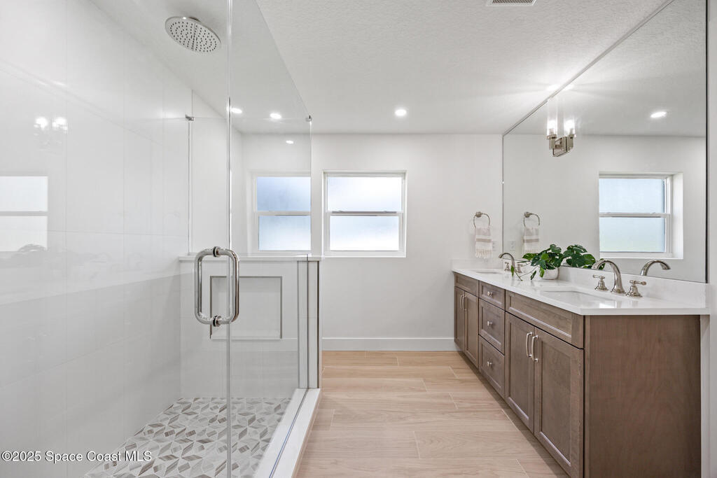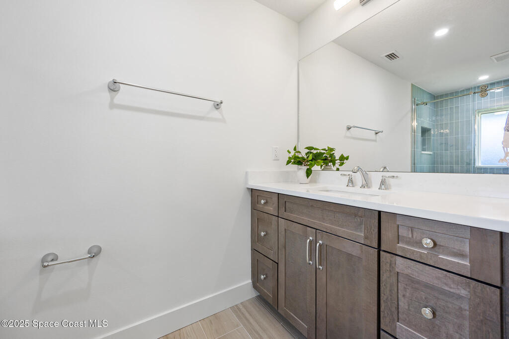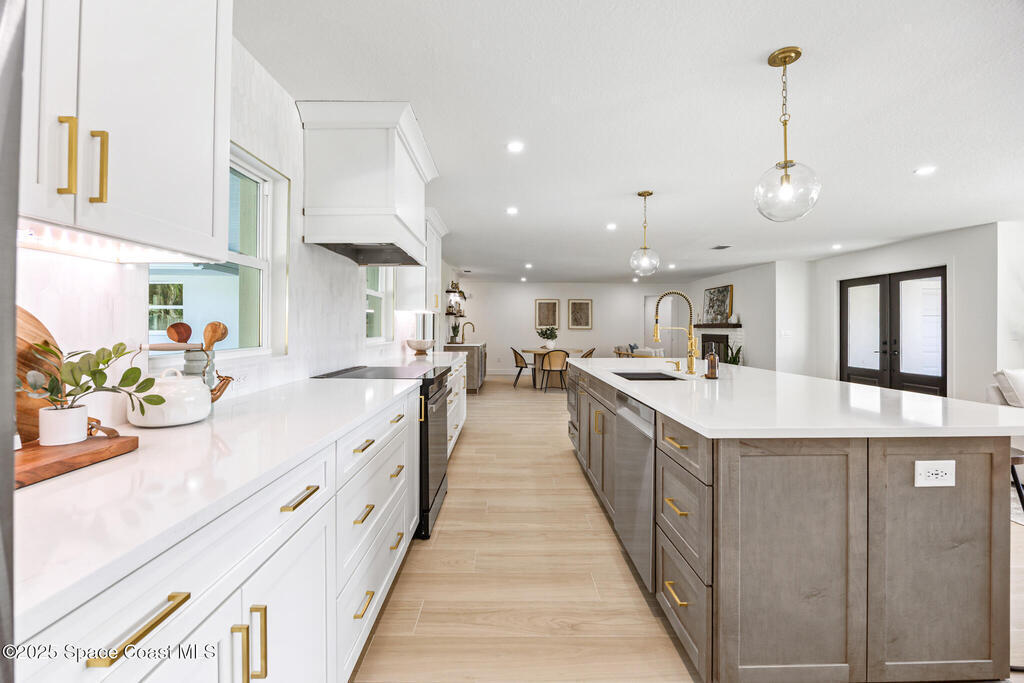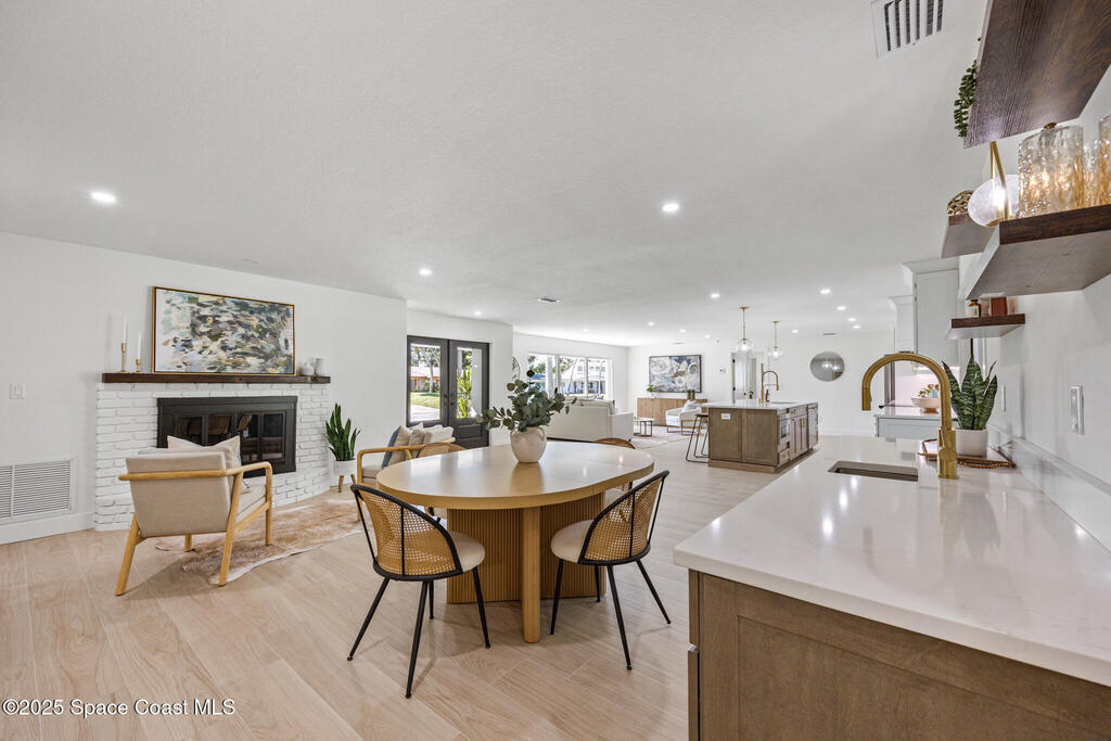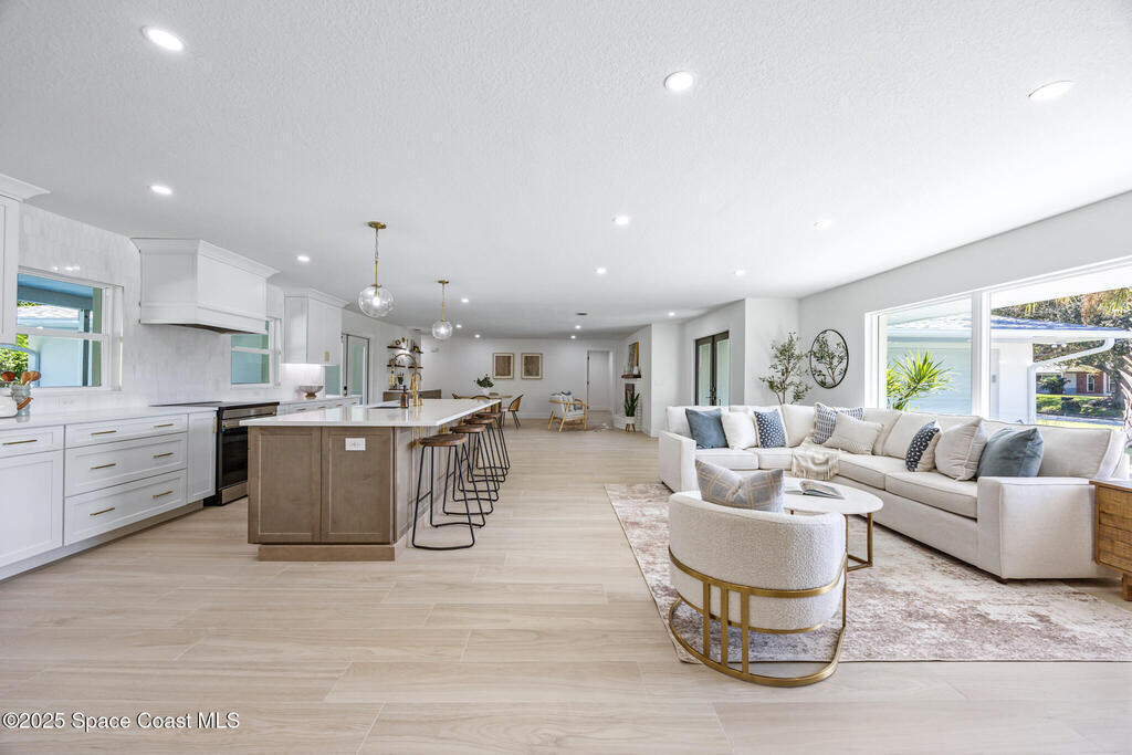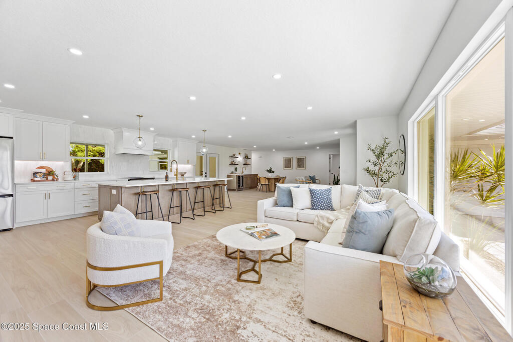This fully remodeled 4-bedroom, 3-bath home in the desirable SOFA district combines modern design with enduring quality. Located in a quiet cul-de-sac on a .4-acre lot, the open layout features clean lines and organic textures throughout. The chef's kitchen includes a jumbo island with double-sided storage, quartz countertops, dolomite marble backsplash, custom soft-close cabinetry, and all-new Samsung stainless steel appliances. Under-cabinet lighting and a bar area with beverage fridge and sink complete the space. Ceramic tile flows seamlessly through the home, with a private primary suite on one side and three spacious bedrooms on the other, including one with an ensuite bath. All bedrooms feature custom natural wood closet systems, and the home offers a large indoor laundry room. Bathrooms showcase marble and ceramic tile with curated fixtures and high-end finishes.