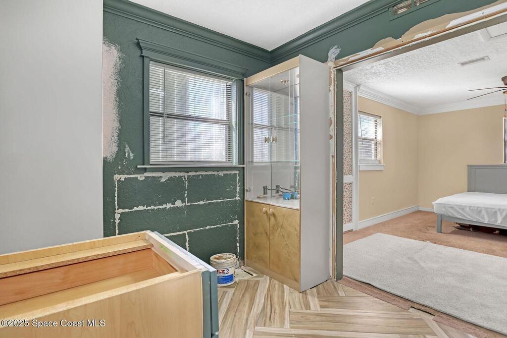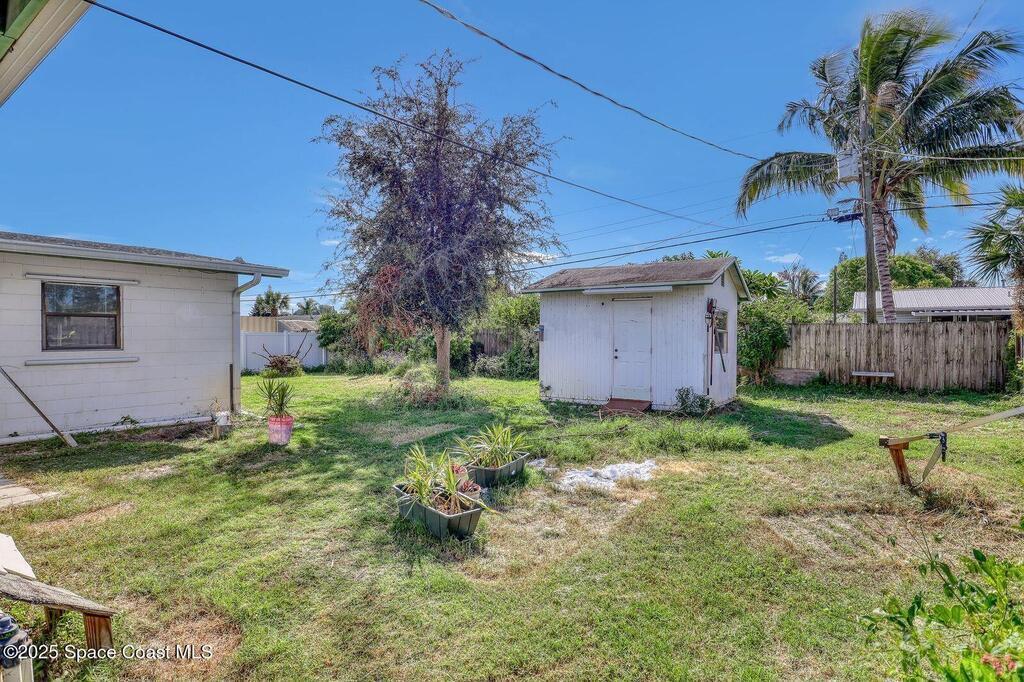 Adorable, concrete block home in the heart of Merritt Island! This charming 3 bedroom/ 2 bath/ 1 car garage home is full of character with some really cool projects started ready for your finishing touch! Amazing opportunity to live on Merritt Island for 1st time home buyers, a vacation home or an investment purchase! This budget pleaser has an outside storage shed, inside laundry & a spacious eat-in kitchen. The living/dining/kitchen are open and bright and the primary bedroom has a large walkin closet! Peace of mind with new electrical panel & surge protector, 2018 roof & gutters, 2017 hvac & new air ducts, double pane windows, hurricane shutters, hurricane rated garage door, rain soft water system, sprinkler system, and located on a dead-end quiet street! Only minutes to boating ramps, fishing, great schools and many restaurants & shopping malls. Cocoa beach is only a 5 min. drive, 10 min. to Port Canaveral, 25 min. to KSC and less than an hour to Orlando Airport and Theme Parks
