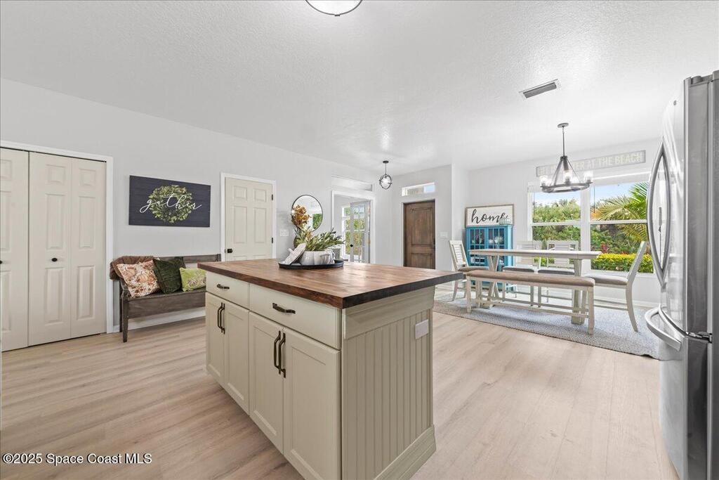 Experience the ultimate retreat in this stunning home, where every detail has been meticulously crafted. As you step inside, you'll be greeted by an open floor plan featuring 4 bedrooms and 2 stylish baths. The primary bath offers a large walk in shower with a separate soaking tub. Recent renovations have created this homes modern sophistication with sleek LVP flooring, impact windows and doors. The kitchen is a culinary haven, boasting elegant wood cabinetry, a rustic wood block island and gleaming quartz countertops. With solar fans in the attic, you can enjoy piece of mind knowing you're minimizing your energy footprint. Unwind on your lanai and soak in breathtaking sunsets surrounded by the tranquility and seclusion you deserve.