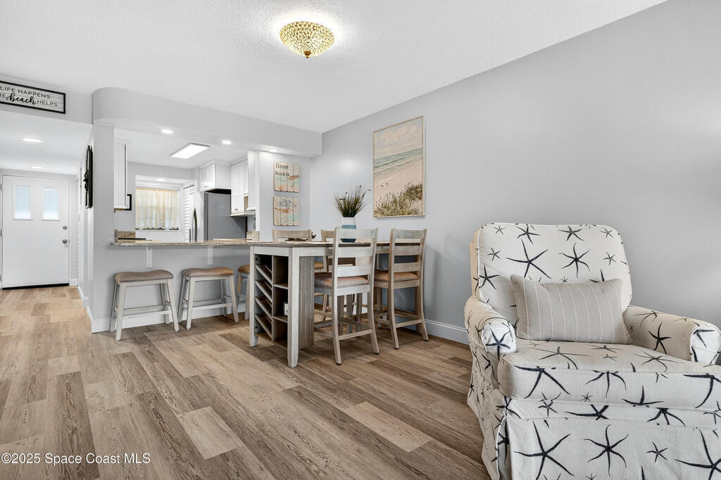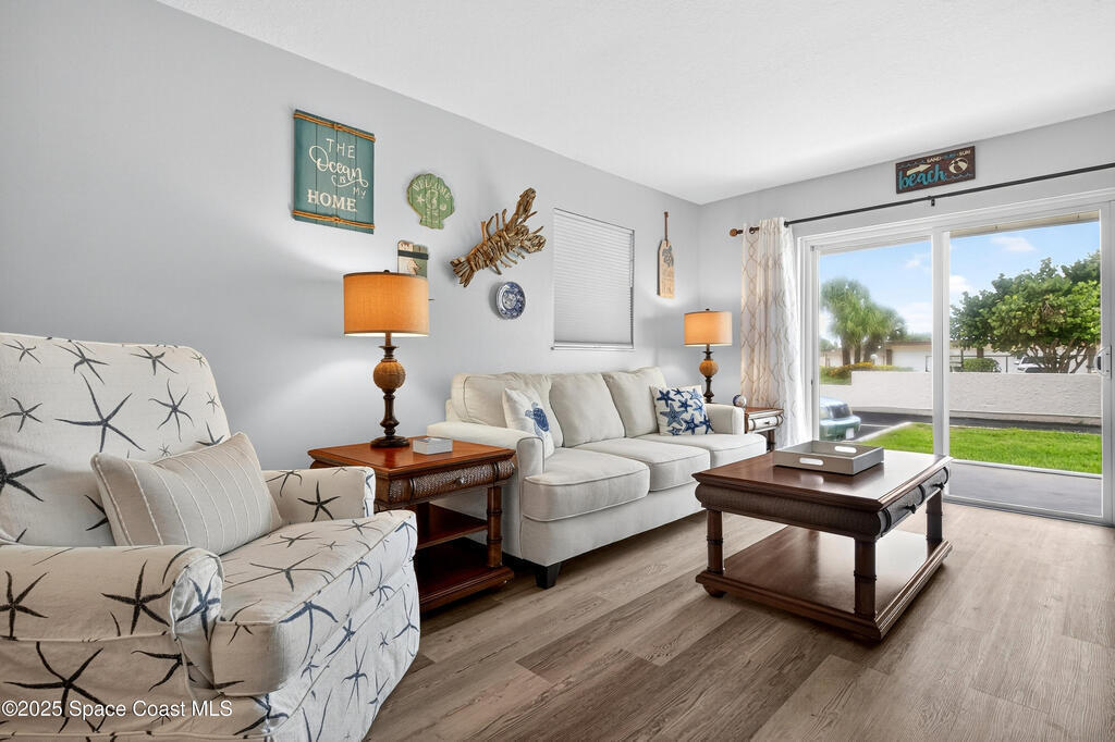 Beachside living at its finest! Also listed for sale, MLS #1056518 This beautifully updated, move-in-ready condo, with oceanfront living is ready to move in! Awaken to spectacular sunrises in this fully renovated 2-bedroom, 2-bath condo in Cocoa Beach! Situated in the central heart of the island, this modern, spacious end unit has Ocean views on a wonderful wrap-around patio with a storage shed protected by wrap around hurricane shutters. (New in 2023). Watch rockets galore from this luxury condo patio. Wonderful beach walks, vibrant sunrises and a private beach access await you! Ground floor. No elevator needed, Low condo dues! The complex has recently undergone concrete restoration. This is a highly maintained complex ensuring long-term beauty and sustainability.