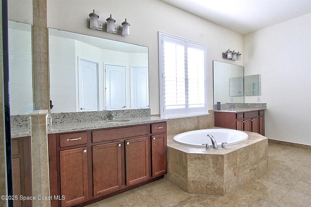 Maintenance-free living in the desirable 55+ community of Bridgewater at Viera! This beautifully appointed 3-bedroom, 3-bath home offers all-tile flooring, plantation shutters, and a spacious open layout designed for effortless entertaining. The gourmet kitchen features granite countertops, a large island, and stainless steel appliances. Each bedroom has its own private en-suite bath, perfect for visiting guests. Enjoy peaceful lake views from the screened paver patio, plus an extended open paver patio for grilling or soaking in the sun. A rare 3-car garage provides ample storage. Furnishings are negotiable for a turnkey option.Residents enjoy resort-style amenities including a stunning private clubhouse with heated pool and spa, state-of-the-art fitness center, tennis and pickleball courts, billiards room and even a private movie theater -- all within a vibrant, active community minutes from shopping, dining and beaches. Live the Viera lifestyle you've been waiting for!