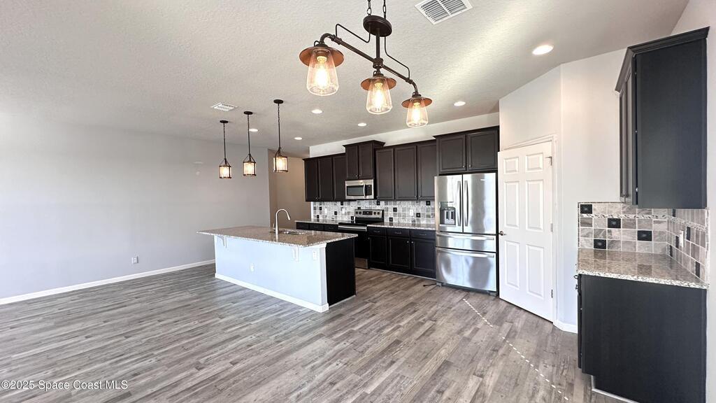 JUST REDUCED! Built in 2020 and beautifully maintained, this spacious 4-bedroom, 2-bath rental offers just under 2,000 square feet of thoughtfully designed living space. Enjoy an open floor plan with luxury vinyl plank flooring throughout--no carpet, easy upkeep! The modern kitchen features a large island, ample counter space, and plenty of cabinetry--perfect for cooking, entertaining, or working from home. The split-bedroom layout includes roomy guest bedrooms and a large primary suite with a walk-in closet and private bath featuring double sinks, an upgraded vanity, and a walk-in shower.Additional highlights include a dedicated laundry room with wash tub, a fully fenced backyard with peaceful pond views, and a screened-in, pavered patio plus extended outdoor space--ideal for relaxing or hosting friends. Convenient location, stylish finishes, and functional design make this rental a standout choice.