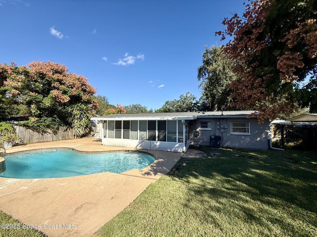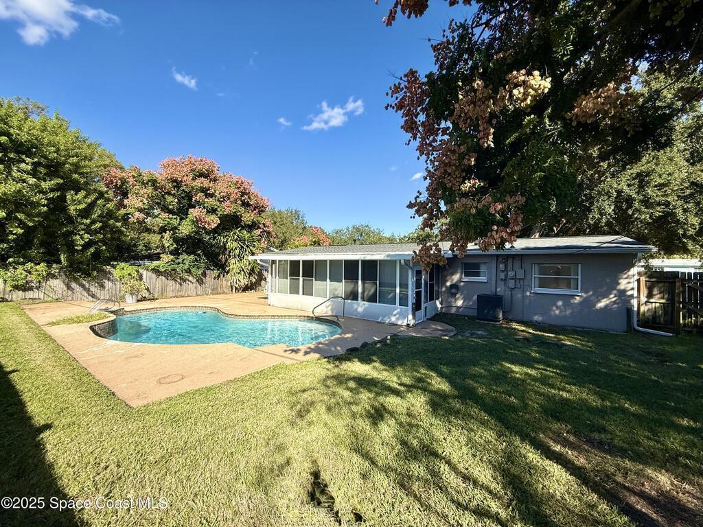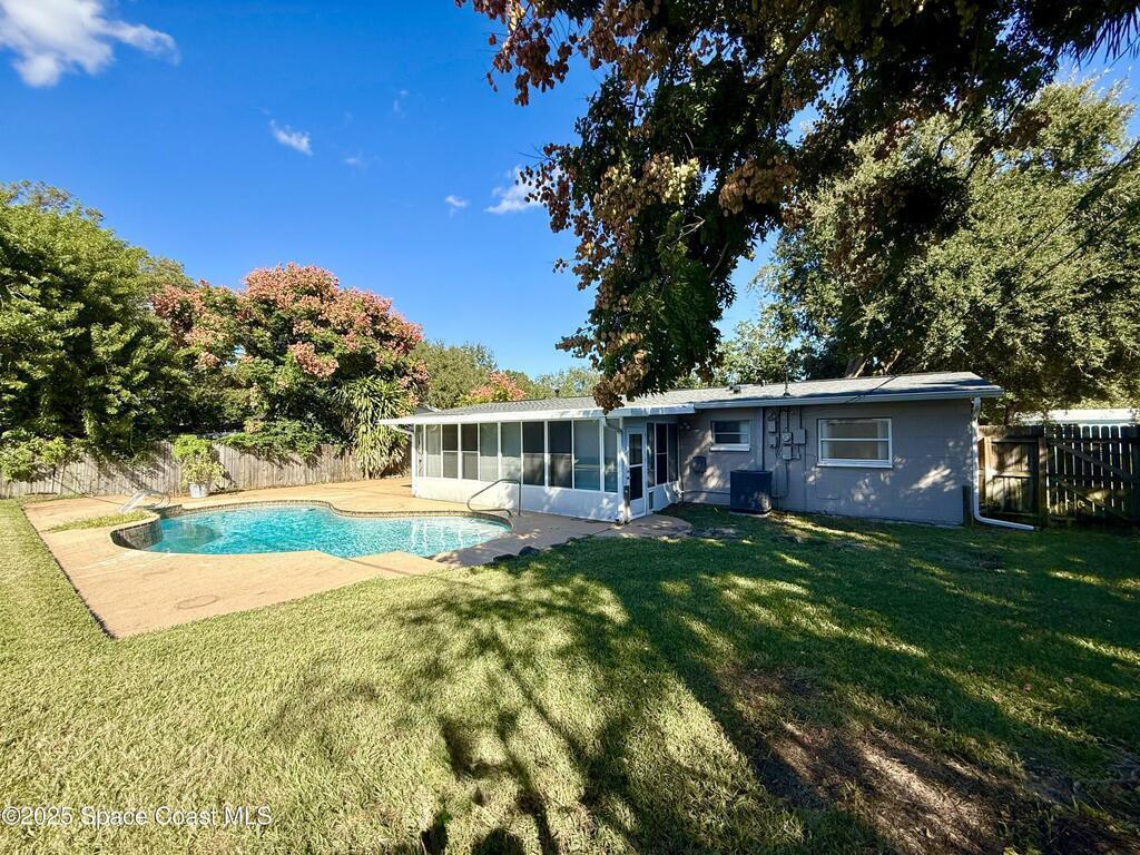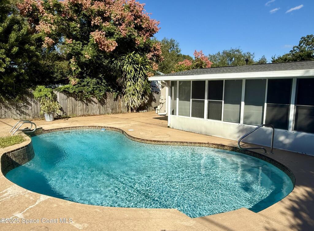 This charming three-bedroom, two-bathroom home features concrete block construction and boasts mature landscaping that enhances its curb appeal. Embrace the Florida lifestyle with a screened porch, a privacy-fenced backyard, and an inviting inground pool. The interior has been thoughtfully updated, including the kitchen, bathrooms, and flooring. Recent improvements include a gas hot water heater installed in 2017, a new roof and gutters added in 2023, an HVAC system from 2016, and modern appliances such as a gas range and dishwasher, both acquired in 2023 and 2022, respectively. This residence is truly move-in ready.