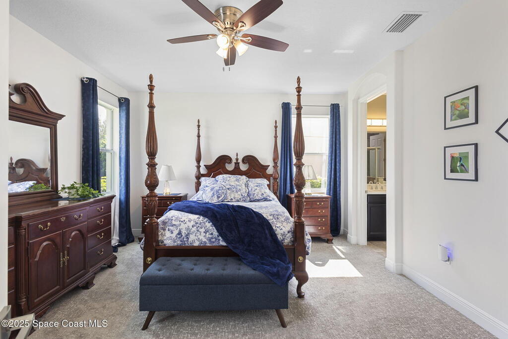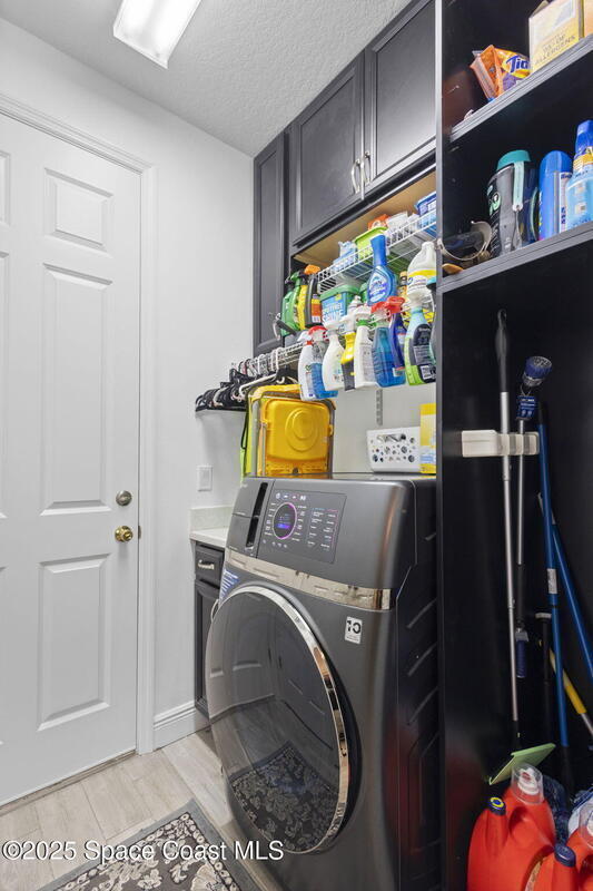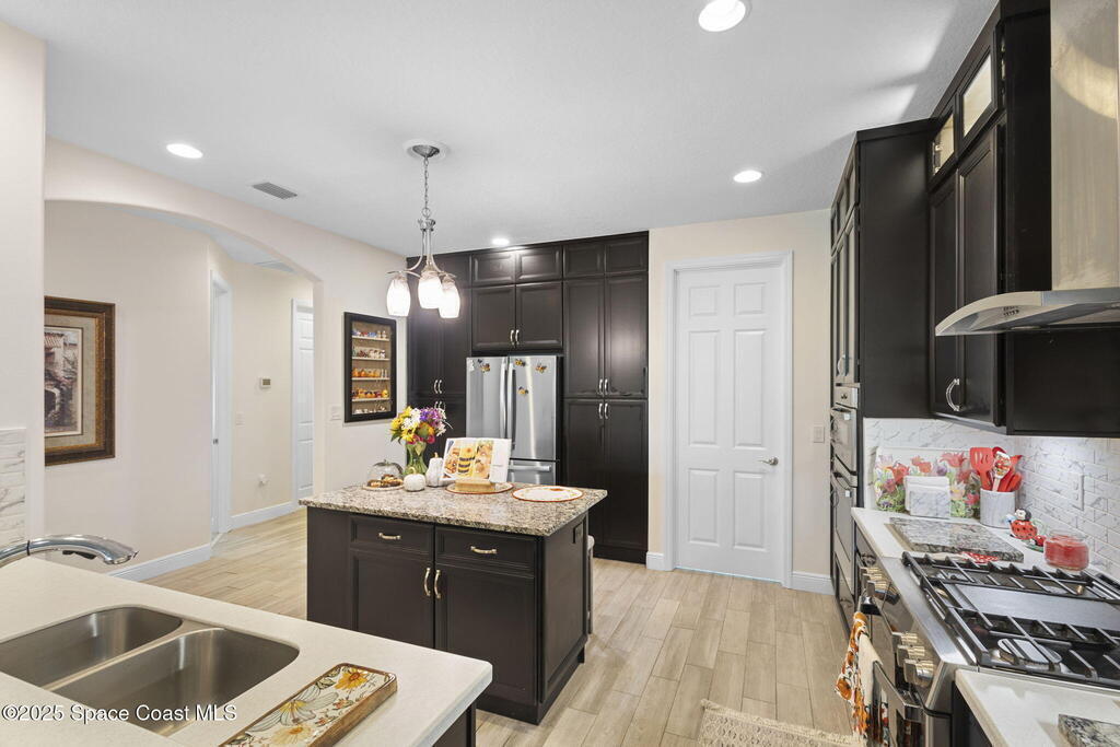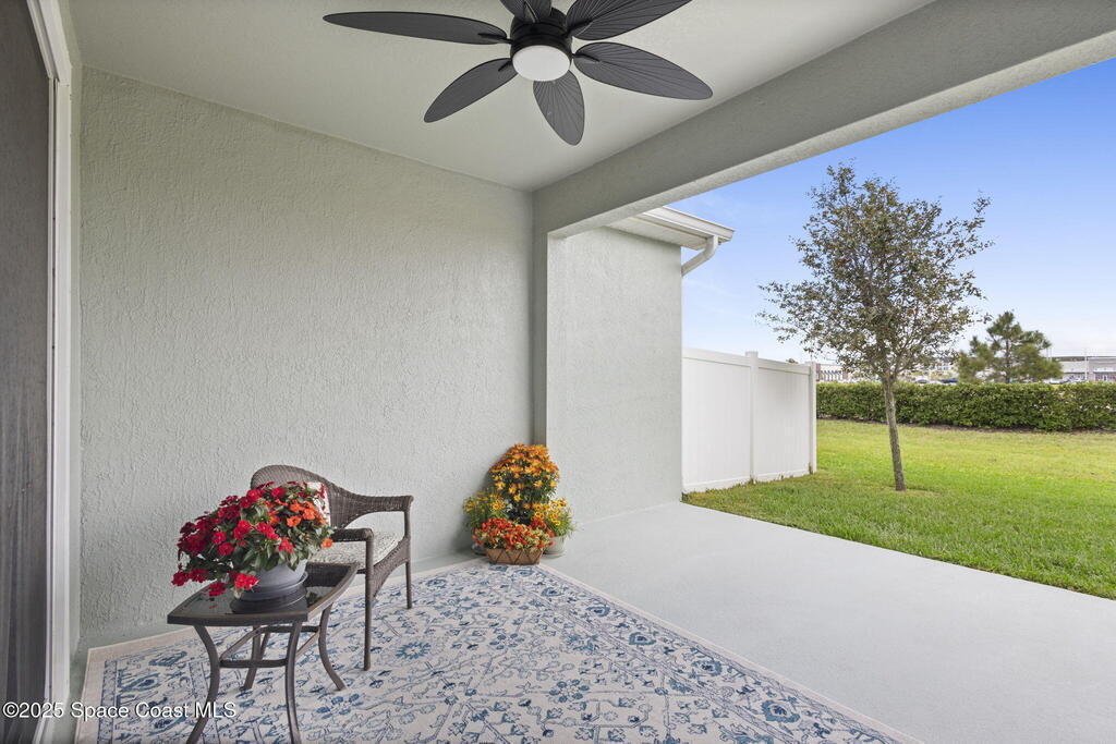 Perfectly landscaped and beautifully maintained end unit, this freshly painted home offers both style and functionality in every corner! The custom kitchen is a true showpiece--featuring an abundance of cabinets with pullout shelves, granite island with electric, Corian countertops, a gas stove and oven, double oven with built-in microwave, pot filler, and custom built-ins for decorative displays. Primary bathroom has 2 sinks, walk-in closet, garden tub and separate shower! Brand new carpet in the huge bedrooms complements the tile throughout the rest of the home, while the professionally enclosed garage adds valuable living space under air (can be converted back if desired). Enjoy all-new LED lighting and a bright, open layout. Community amenities include a sparkling pool, clubhouse, fitness room, and playground--all just minutes from the best shopping and dining in Viera!