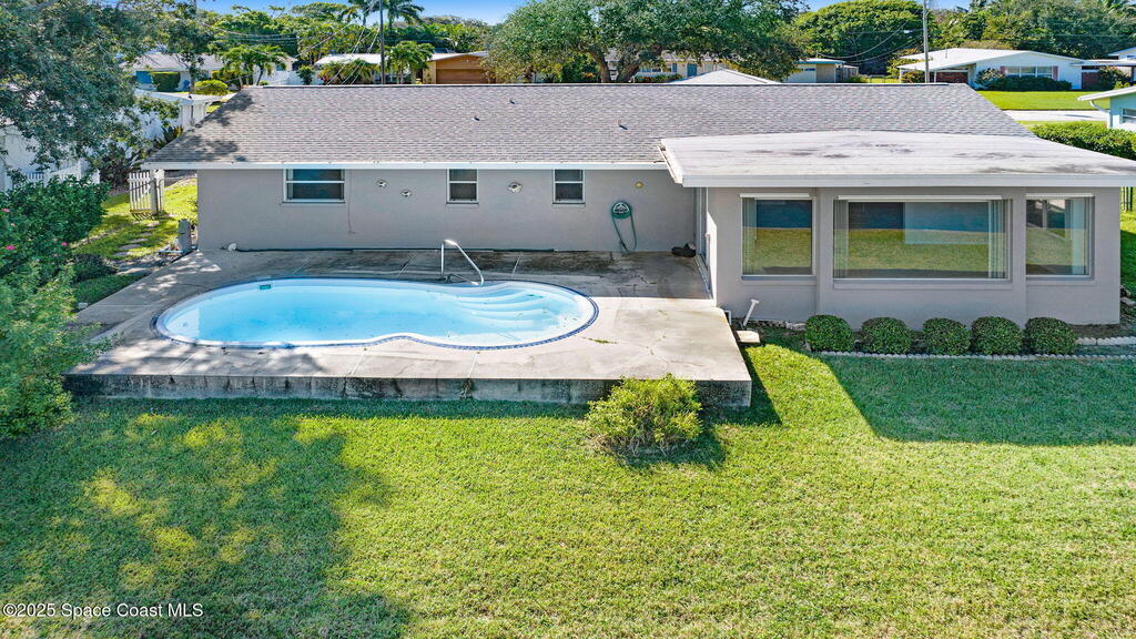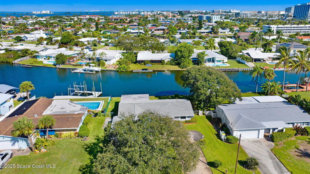 This is your opportunity to live on the water with a pool in the heart of Cocoa Beach! Right across from Lori Wilson Park! Great bones with the opportunity to make it your own! Light & bright eat-in kitchen with a corner front window can easily be remodeled into a modern open kitchen overlooking the two big great rooms! Loads of natural light and neutral colors! Terrazo floors can be preserved or put your choice of flooring down! Open pool overlooking the water! Seawall in great shape with plenty of room for a dock! Fenced yard plus a sprinkler system on reclaimed water! A/C only 1 yr old! Exterior paint only a year old! Seamless gutters! Easy ride to the Banana River or pop over to the beach! No HOA! Time to enjoy some beachside living! Easy to show!