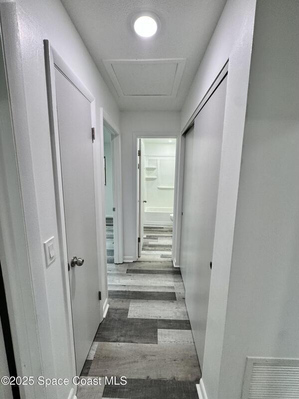 Welcome to 789 Walnut Drive in beautiful Melbourne, Florida -- a fully renovated 3-bedroom, 2-bath home showcasing modern style and thoughtful design. Step inside to discover a bright, open family room and dining area with updated LED lighting throughout. The kitchen features white Shaker cabinetry, elegant Carrara marble countertops, and stainless steel appliances. The spacious primary bedroom is privately set at the rear of the home, offering patio access and serene views of the fenced backyard. Its ensuite bath boasts a beautifully tiled walk-in shower with classic subway details and a stylish vanity. Two guest bedrooms share a full bath with a tub and shower combination. Additional highlights include a newer air conditioner, water heater, full-size stackable washer and dryer, and brand-new rain gutters. The one-car garage and fully fenced yard add convenience and comfort. Impeccably clean and move-in ready -- this home feels brand new! Centrally located near shops, dining, and more.