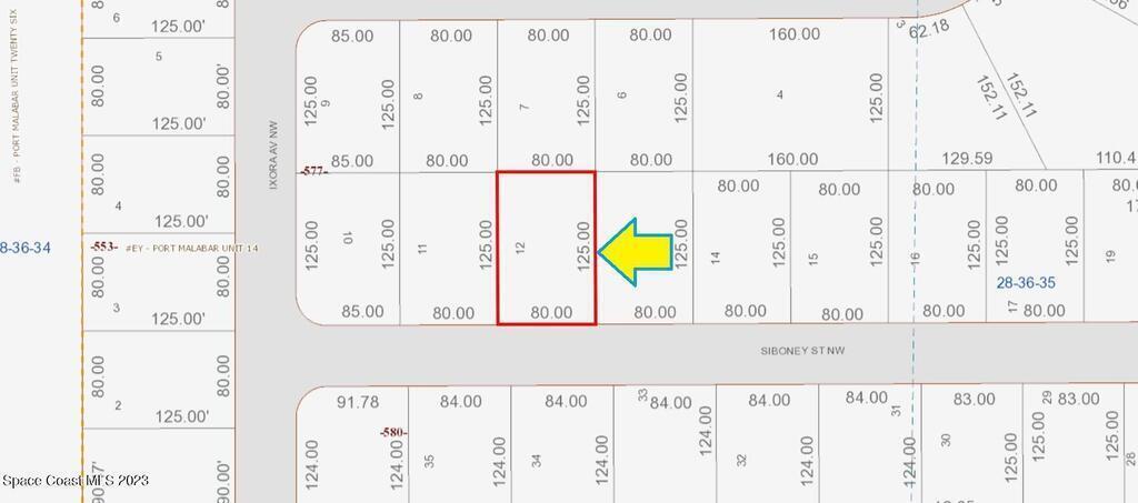 It's a 0.23 acre buildable residential lot available in Port Malabar Unit 14 of Palm Bay. Located in the northwest section, this lot is just 2.5 miles - 6 minutes to the Winn Dixie Supermarket, 2.7 miles - 6 minutes to McAuliffe Elementary School, 10.7 miles - 22 minutes to Melbourne Airport, and 13.8 miles - 30 minutes to the beaches of Indialantic. From exit #176 of I-95 go west on Palm Bay Road for .7 miles, left on Minton Road for .2 miles, right on Emerson Drive for 1.5 miles, left on Jupiter Boulevard for 1.7 miles, and right on Siboney Street. The lot will be on your right. Owner will only consider (a) a full price offer, and (b) a closing AFTER 01/02/2026 (this is for tax purposes).