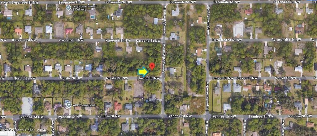 It's a .24 acre buildable residential corner lot available in Port Malabar Unit 14 of Palm Bay. Located in the northwest section, this lot is just 2.7 miles - 6 minutes to McAuliffe Elementary School, 2.6 miles - 7 minutes to the Winn Dixie Supermarket, 10.4 miles - 23 minutes to Melbourne Airport, and 13.4 miles - 30 minutes to the beaches of Indialantic. From exit #176 of I-95 go west on Palm Bay Road for .7 miles, left on Minton Road for .2 miles, right on Emerson Drive for 1.5 miles, left on Jupiter Boulevard for 1.3 miles, right on Serenade Street for .3 miles, and left on Fernwood Avenue. The lot will be on your right on the northwest corner with Nordic Street. Owner will only consider (a) a full price offer, and (b) a closing AFTER 01/02/2026 (this is for tax purposes).
