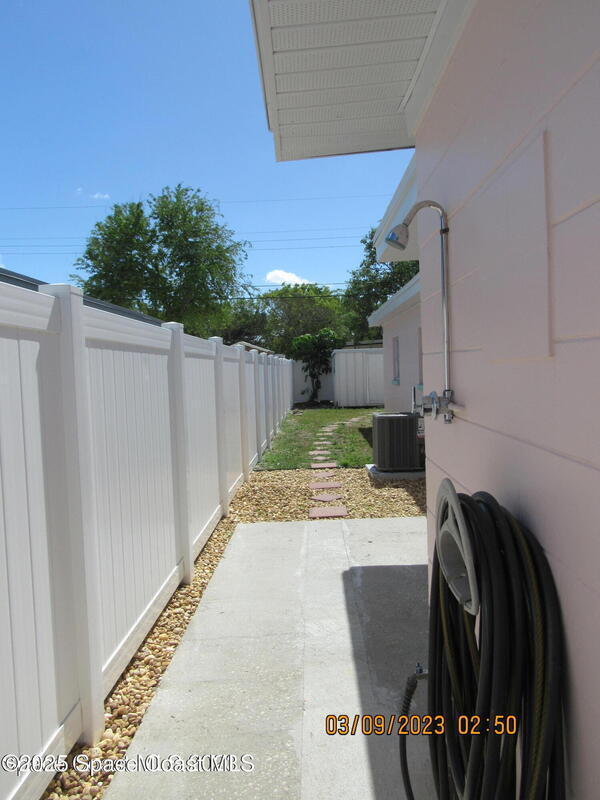 ADORABLE FULLY UPDATED DUPLEX FEATURES STAINLESS STEEL APPLIANCES, CEILING FANS, WASHER/DRYER, TILE AND TERRAZZO FLOORS, CARPORT AND LARGE DRIVEWAY FOR PARKING, PRIVATE PATIO IN BACK WITH SAIL FOR SHADE, OUTSIDE SHOWER. FIRM NO PETS, SHORT WALK TO BEACH, CLOSE TO SHOPPING, LIBRARY, CAPE CANAVERAL REC AREA RENT INCLUDES LAWN AND PEST CONTROL Tenant ocucpied until the end of November
