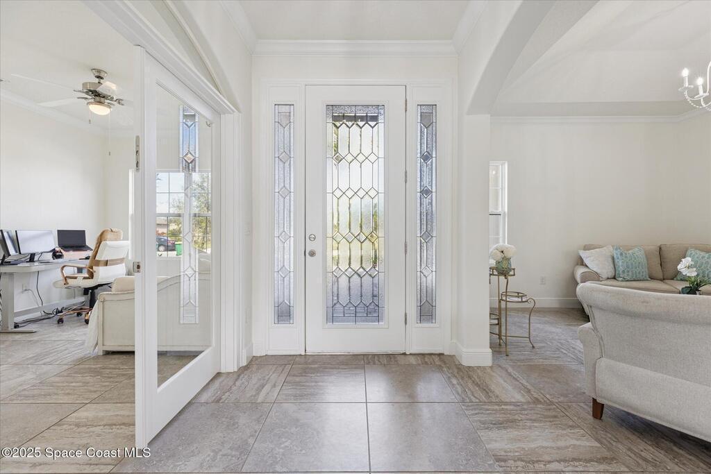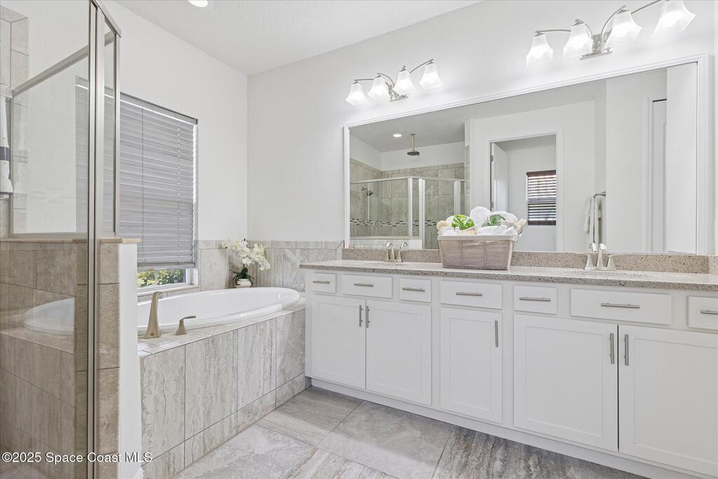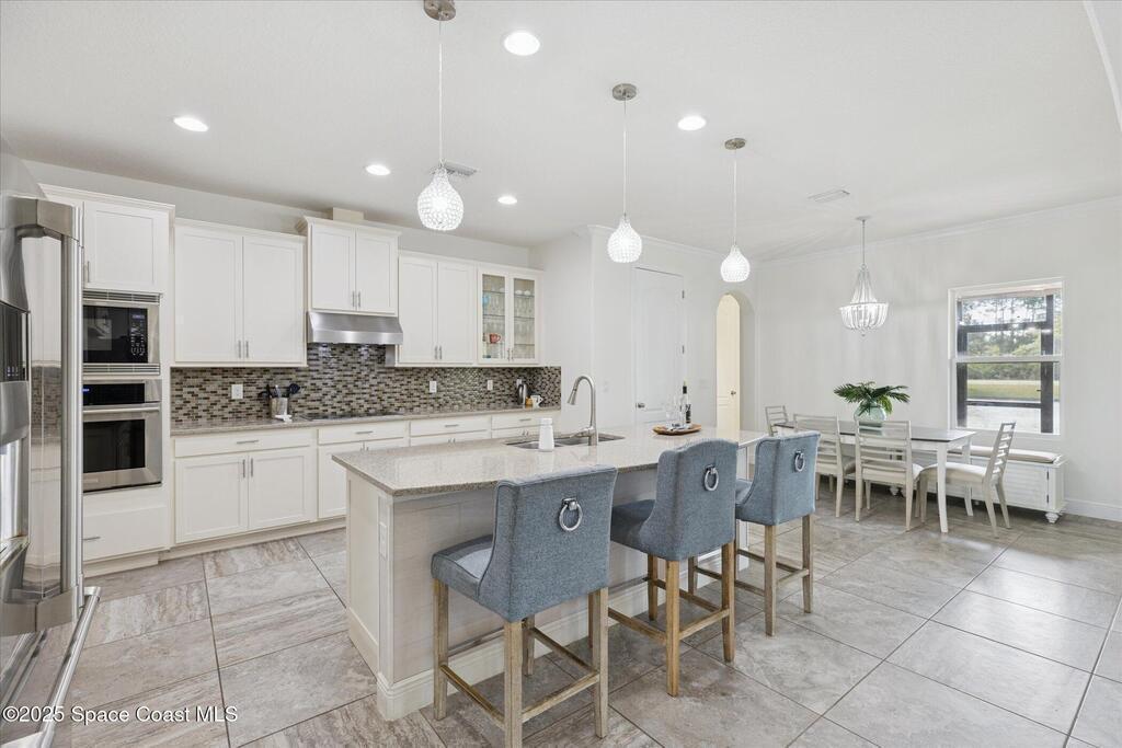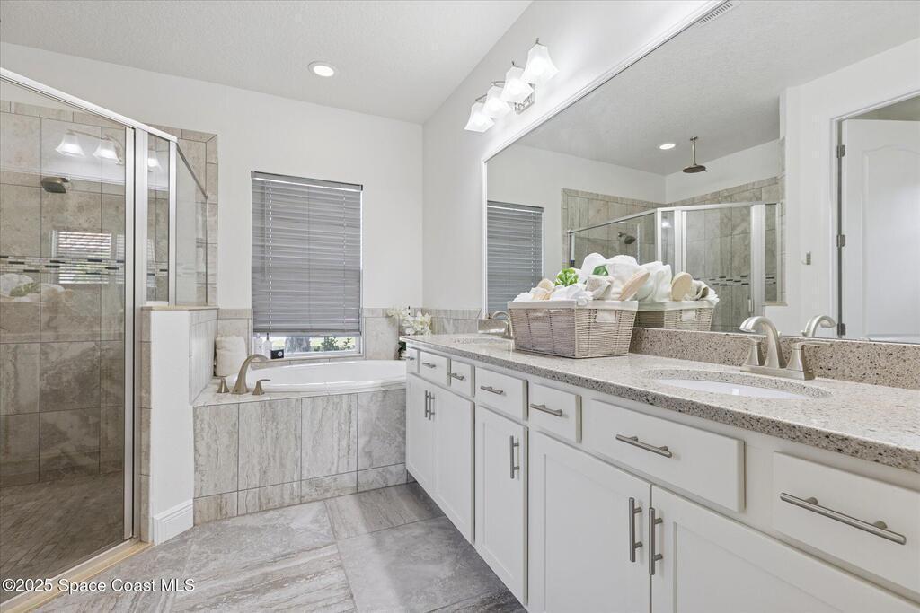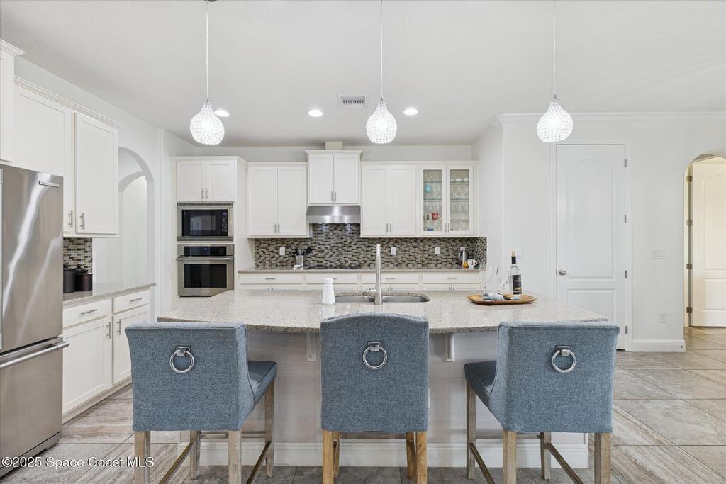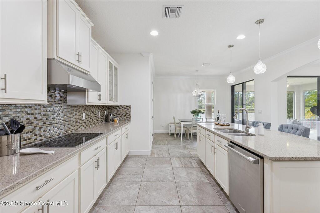 Welcome Home! This luxury design by D.R. Horton combines modern with classic. THE ESTATES at SAWGRASS LAKES Emerald model open floor plan provides large rooms, windows, granite counter tops and backsplash, stainless steel appliances with beautiful 42 inch cabinets, breakfast bar, dining. Stylish tile floor runs through the whole house. His and her walk in closet in primary bedroom, luxurious shower, relaxing soaker tub; granite countertops in all bathrooms. 240 VLT electric car charger installed in garage. Large, screened patio overlooking the splashing fountain in pond creating a serene atmosphere. Ideal living for the whole family. Resort style amenities with upscale clubhouse, gym, tennis and pickle ball court and more. The only private community pool in Brevard with a two story slide, a residence delight, nesting in lushes Florida greenery. Low association fee, onsite office, catering for your needs. Timeless tile roof, A/C, high grade appliances . 2018 built, like new. A must see