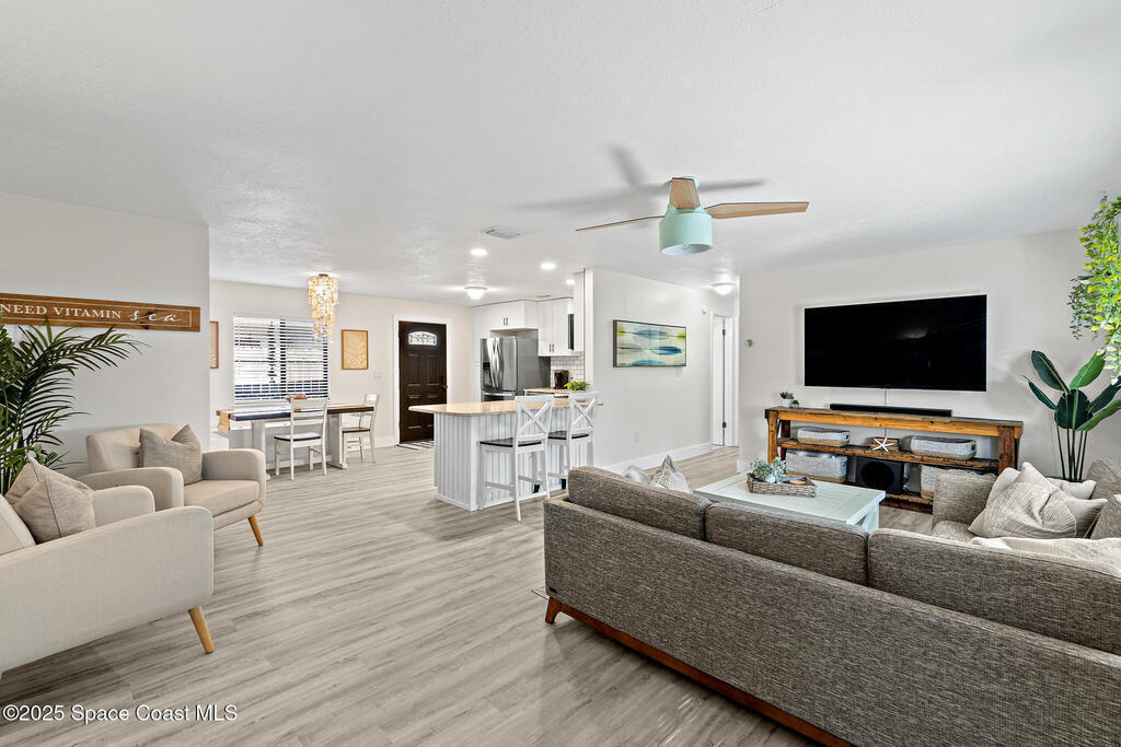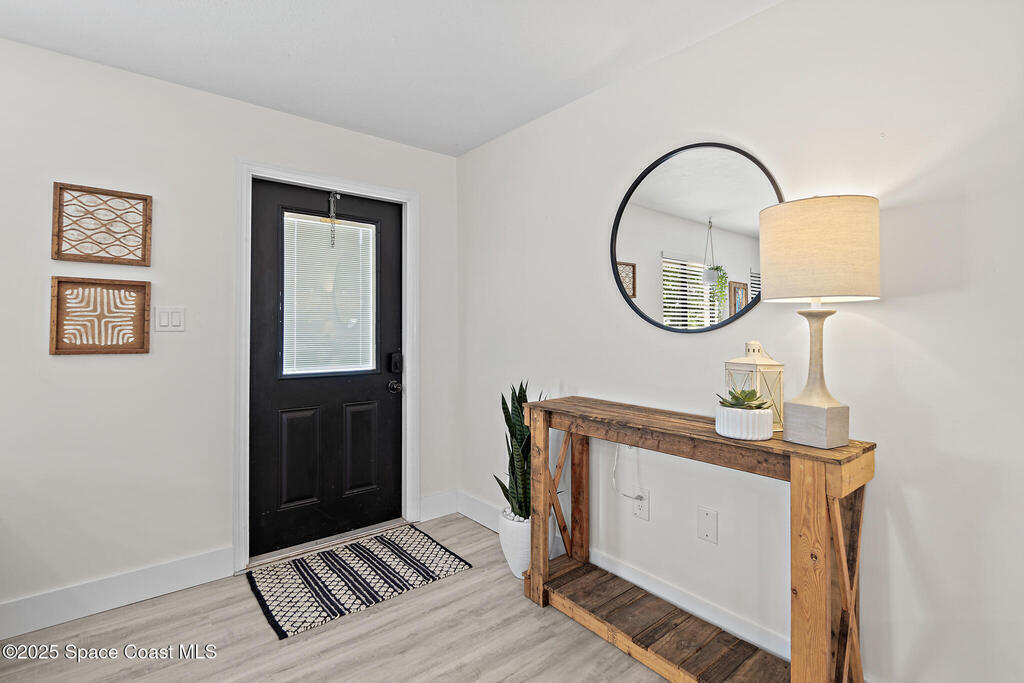 This completely renovated home sits just blocks from the beach in prime Cape Canaveral.Catch rocket launches from your private backyard, then head inside to discover a stunning full renovation. Chef-ready kitchen w/ white shaker cabinets, granite counters, tile backsplash, and stainless appliances. Luxury vinyl w/ underlayment flows throughout the spacious, light-filled rooms. Indoor laundry room keeps things convenient, while your landscaped yard and storage shed add functionality.NO HOA means you control your destiny--run it as a short-term rental powerhouse or move right in as your beachy primary residence. Two assigned parking spots seal the deal.Location: beach 8 minutes away, Port Canaveral close, SpaceX and Space Force practically neighbors, Orlando/airport 45 minutes out. Shopping and schools nearby.Whether you're collecting rental income or collecting seashells. This is Cape Canaveral living at its finest!